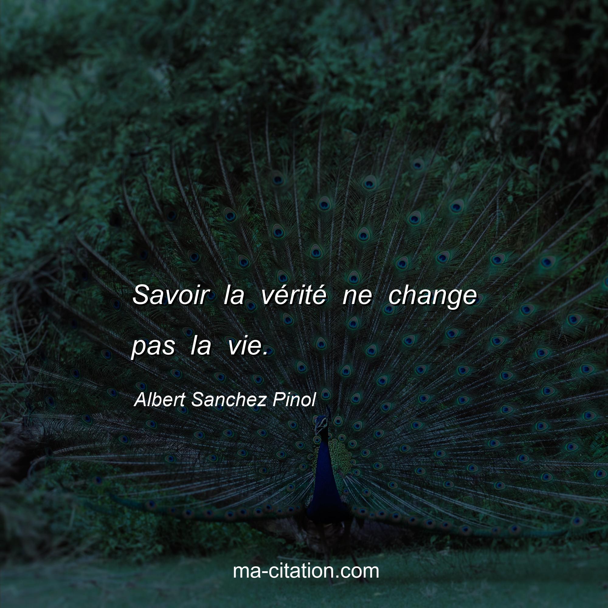Citation sur la vie d'Albert Sanchez Pinol :Savoir la vérité ne change pas la vie.