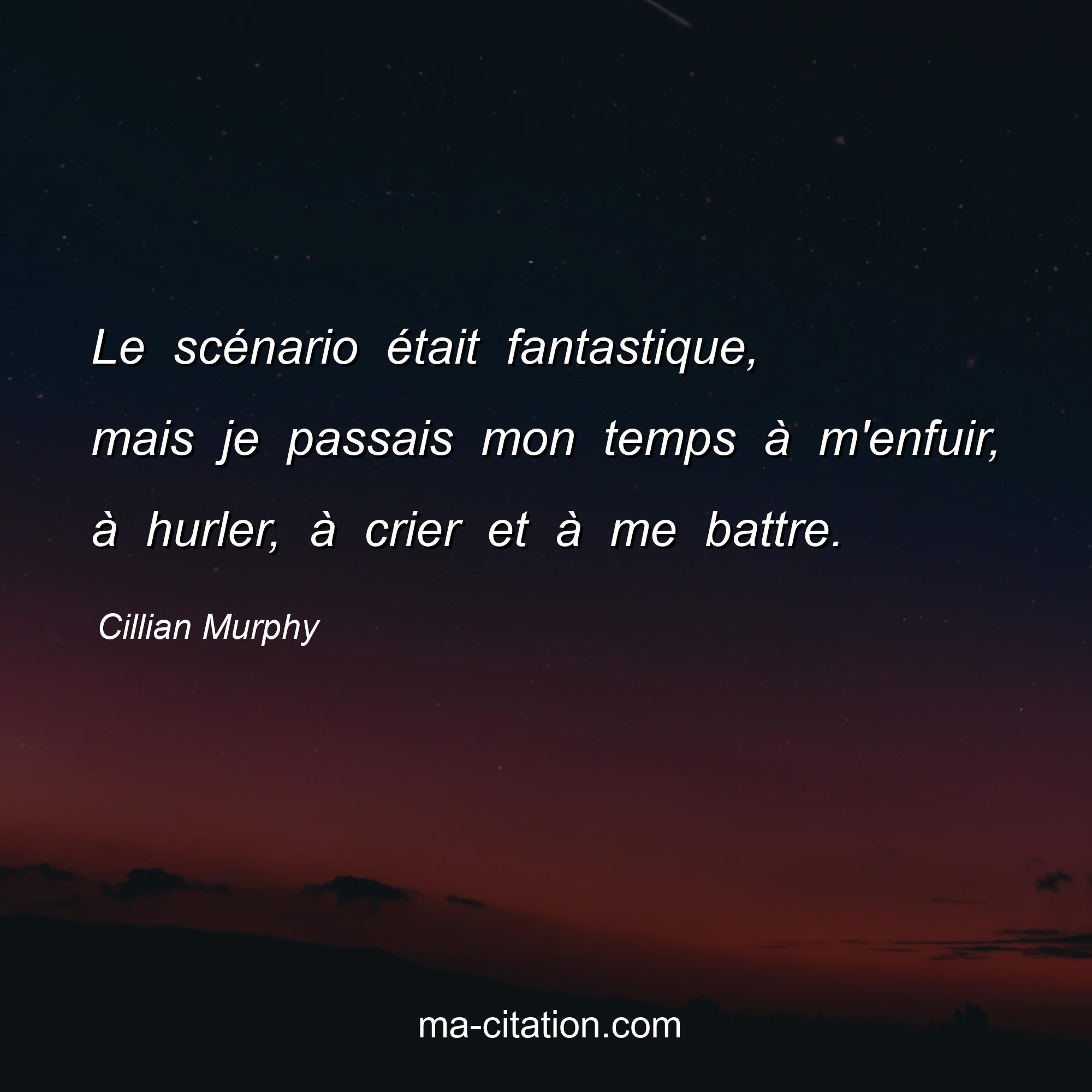 Citation sur la vie de Cillian Murphy :Le scénario était fantastique, mais je passais mon temps à m'enfuir, à hurler, à crier et à me battre.