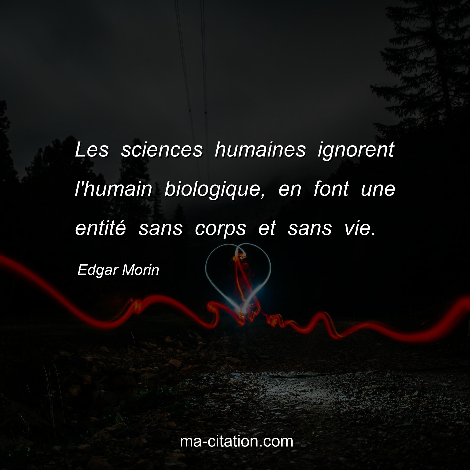 Citation sur la vie d'Edgar Morin :Les sciences humaines ignorent l'humain biologique, en font une entité sans corps et sans vie.