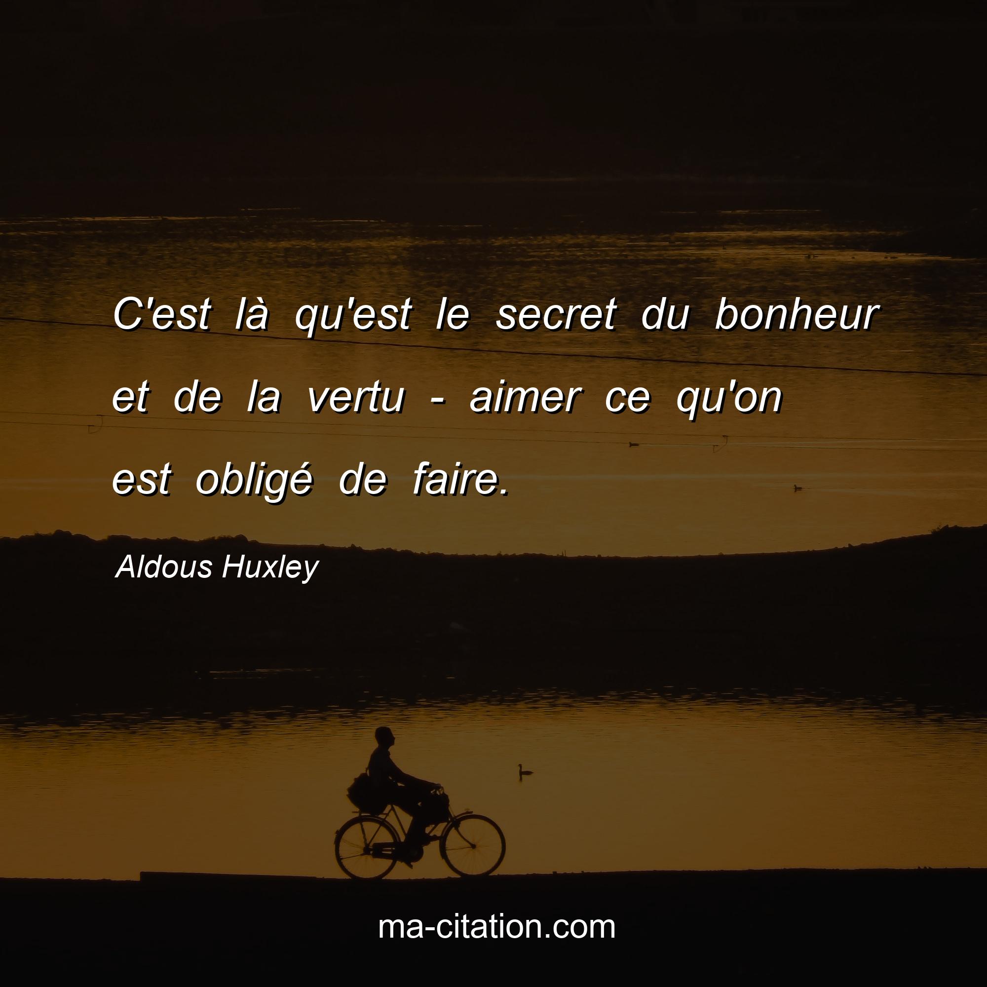 Aldous Huxley est l'auteur de la citation sur la vie "C'est là qu'est le secret du bonheur et de la vertu - aimer ce qu'on est obligé de faire.".