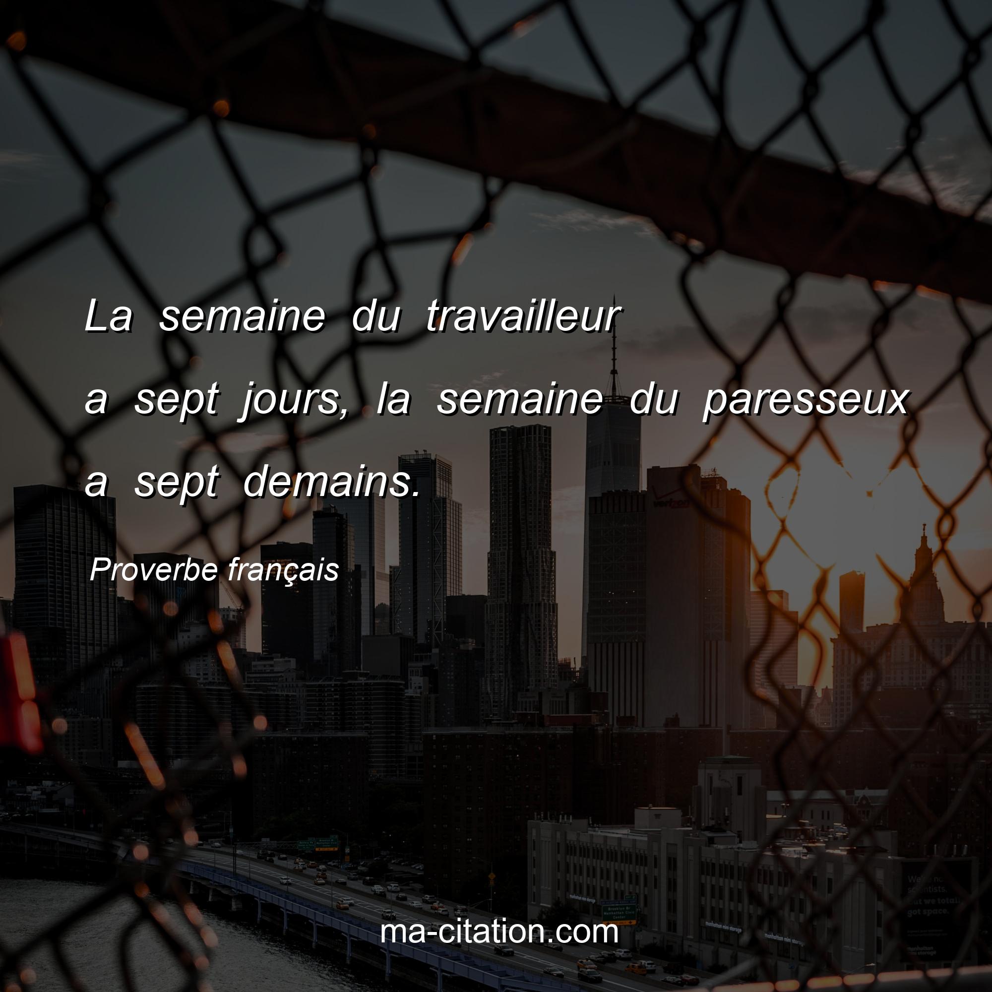 Proverbe français sur la vie :La semaine du travailleur a sept jours, la semaine du paresseux a sept demains.
