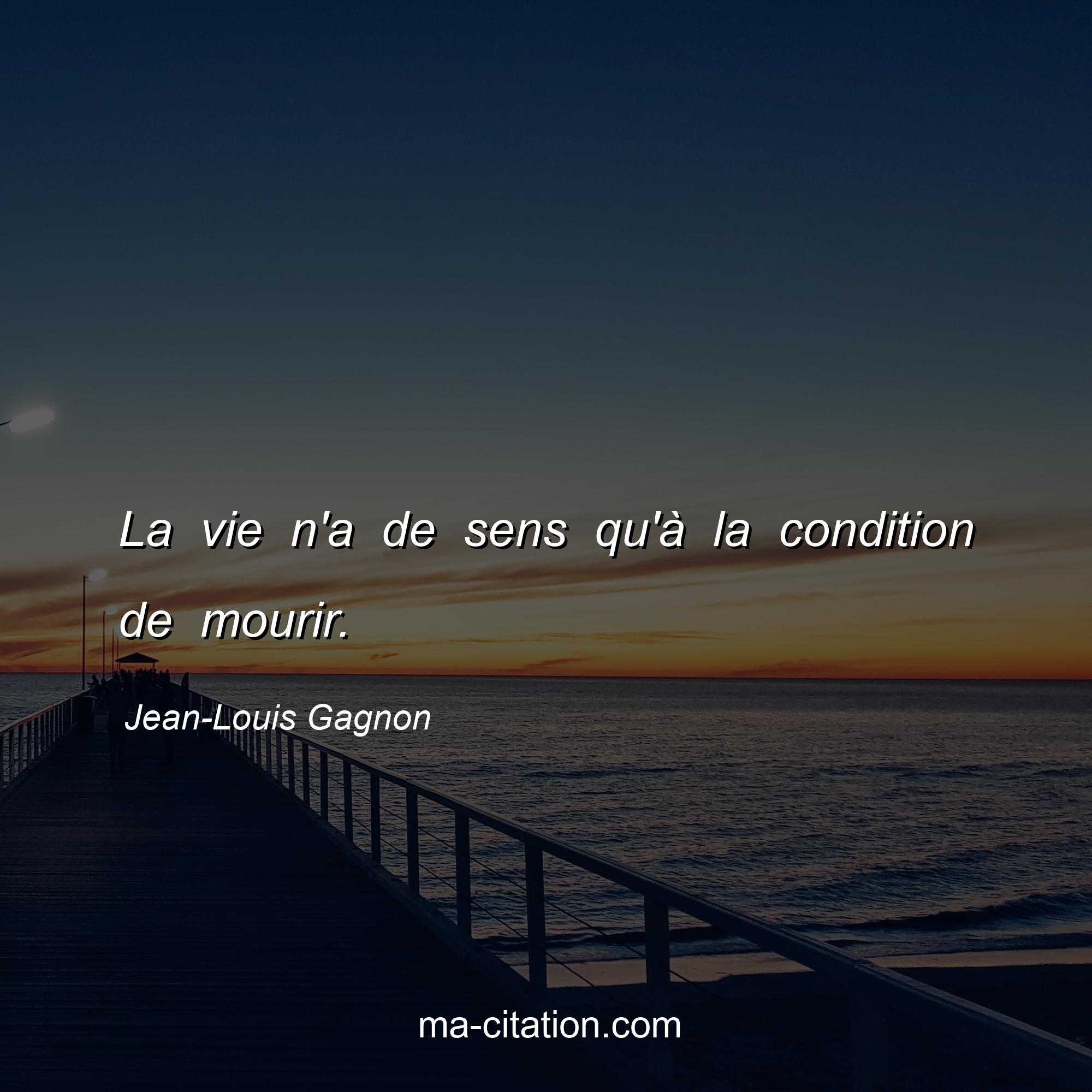 Citation sur la vie de Jean-Louis Gagnon :La vie n'a de sens qu'Ã la condition de mourir.