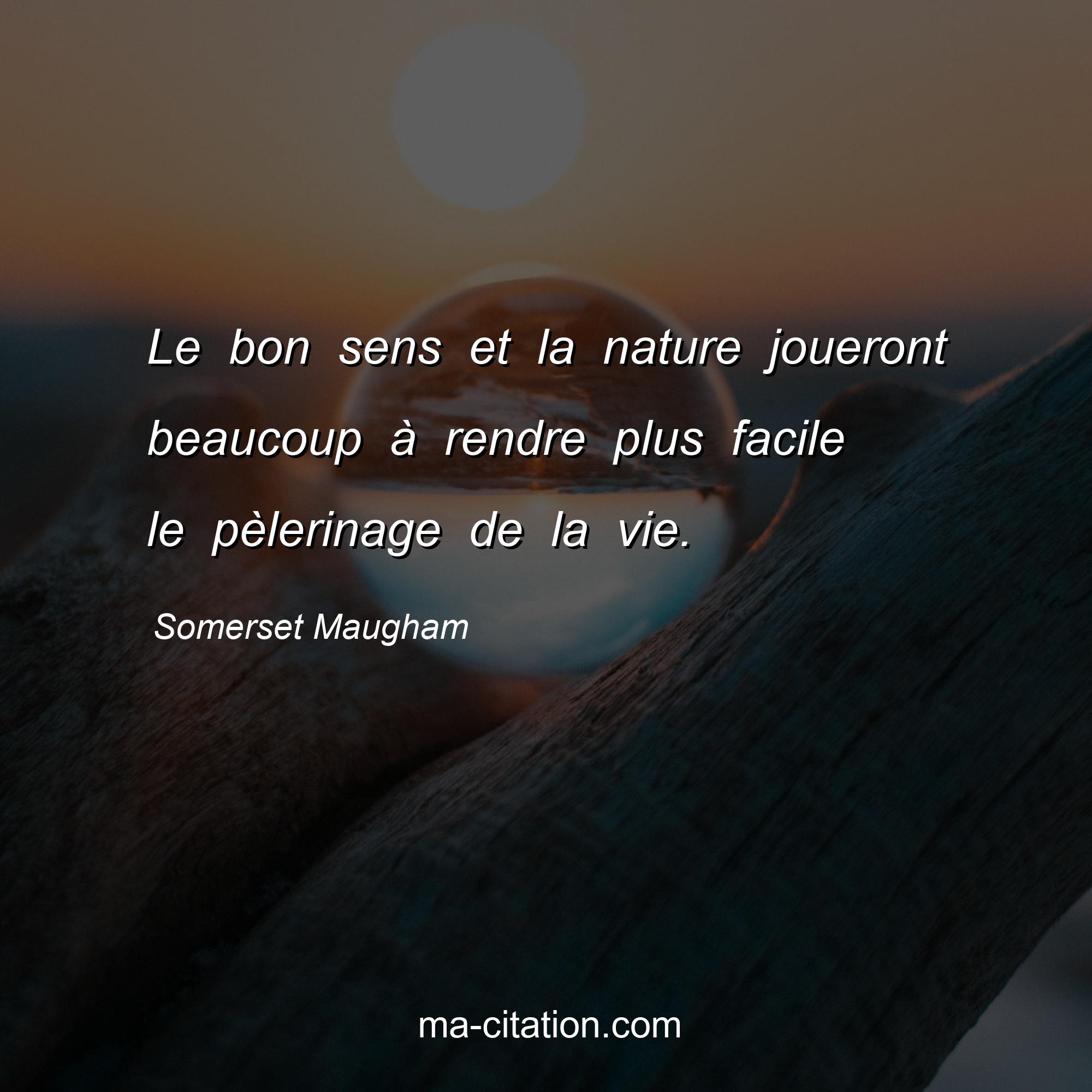 Citation sur la vie de Somerset Maugham :Le bon sens et la nature joueront beaucoup à rendre plus facile le pèlerinage de la vie.