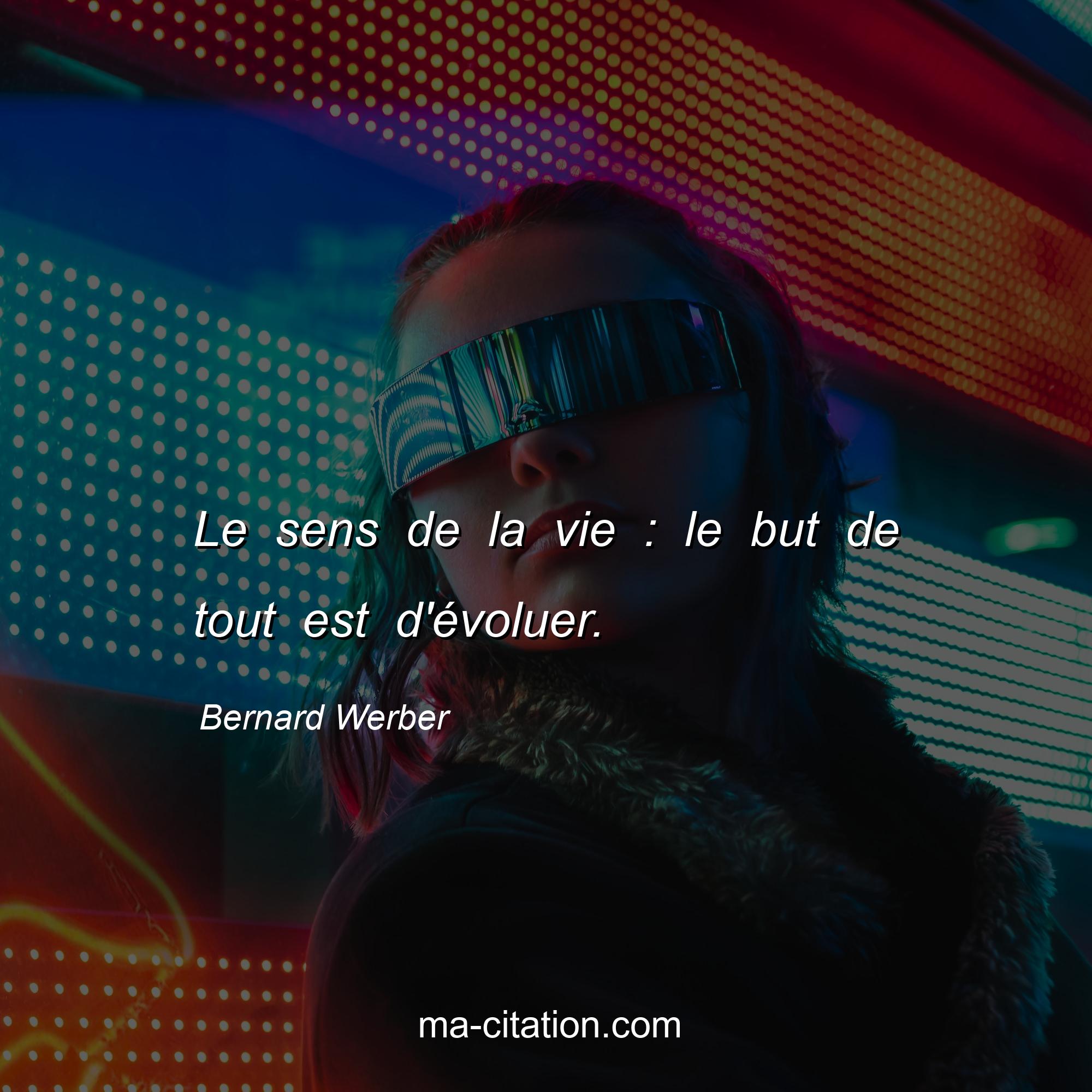 Citation sur la vie de Bernard Werber :Le sens de la vie : le but de tout est d'évoluer.