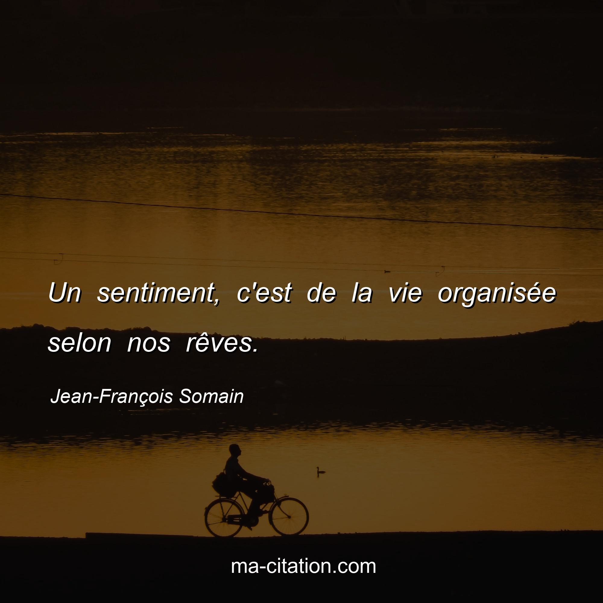 Citation sur la vie de Jean-François Somain :Un sentiment, c'est de la vie organisée selon nos rêves.