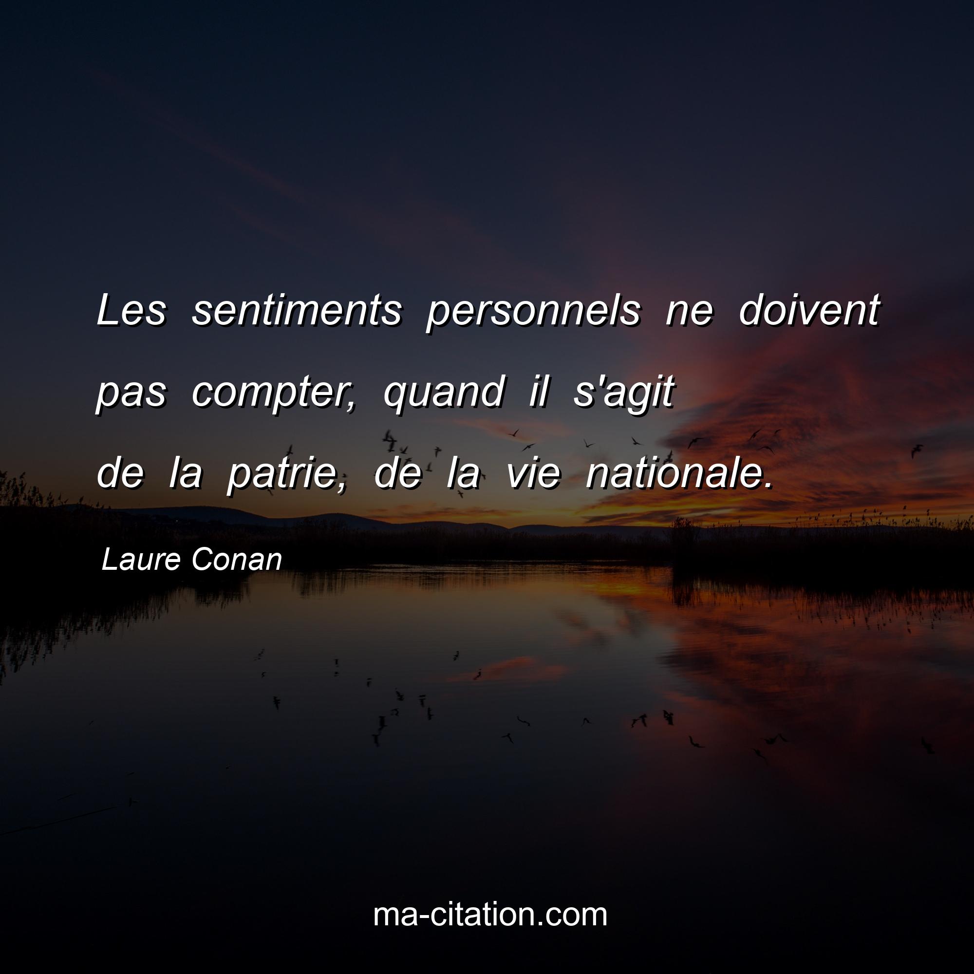 Laure Conan est l'auteur de la citation sur la vie "Les sentiments personnels ne doivent pas compter, quand il s'agit de la patrie, de la vie nationale.".