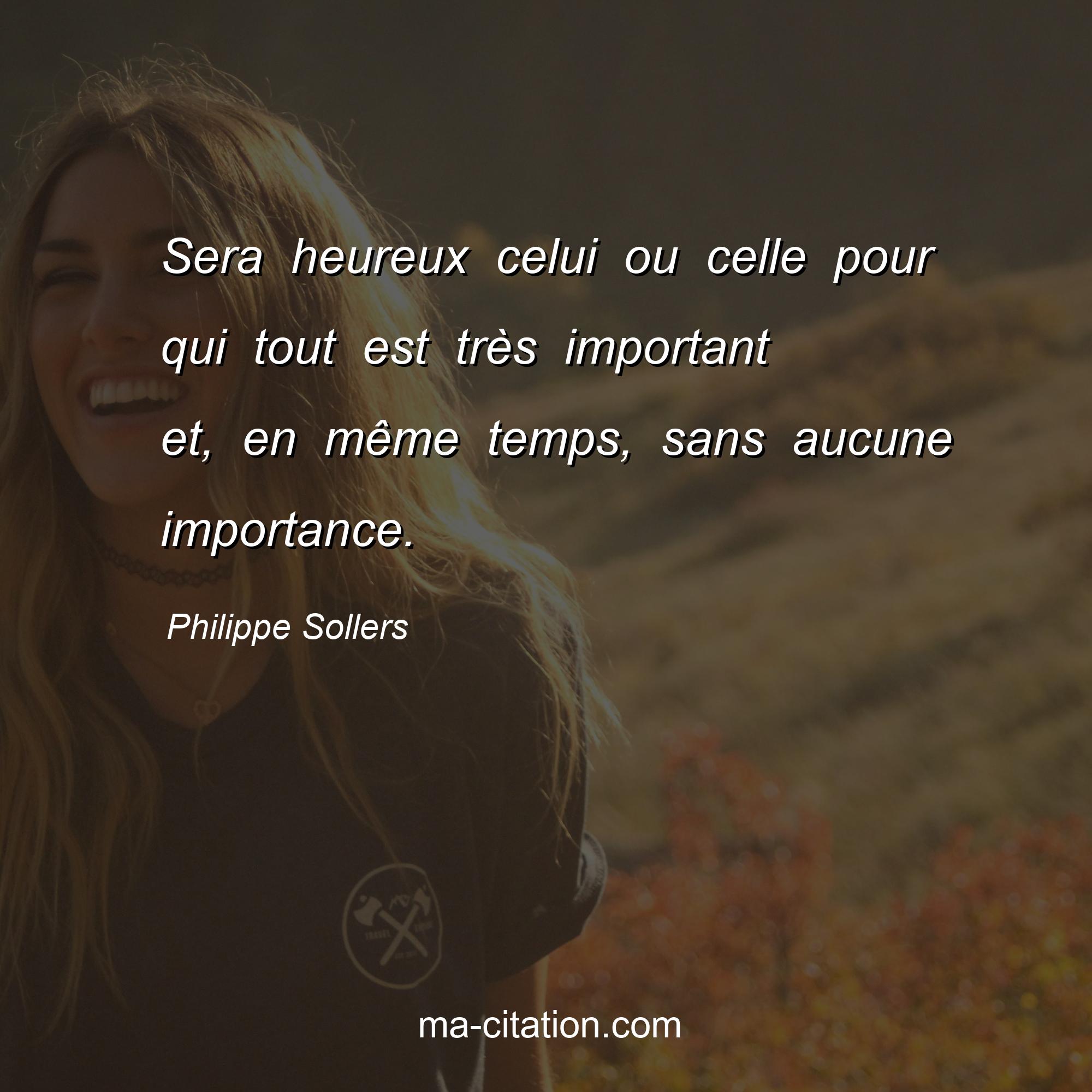 Citation sur la vie de Philippe Sollers :Sera heureux celui ou celle pour qui tout est très important et, en même temps, sans aucune importance.