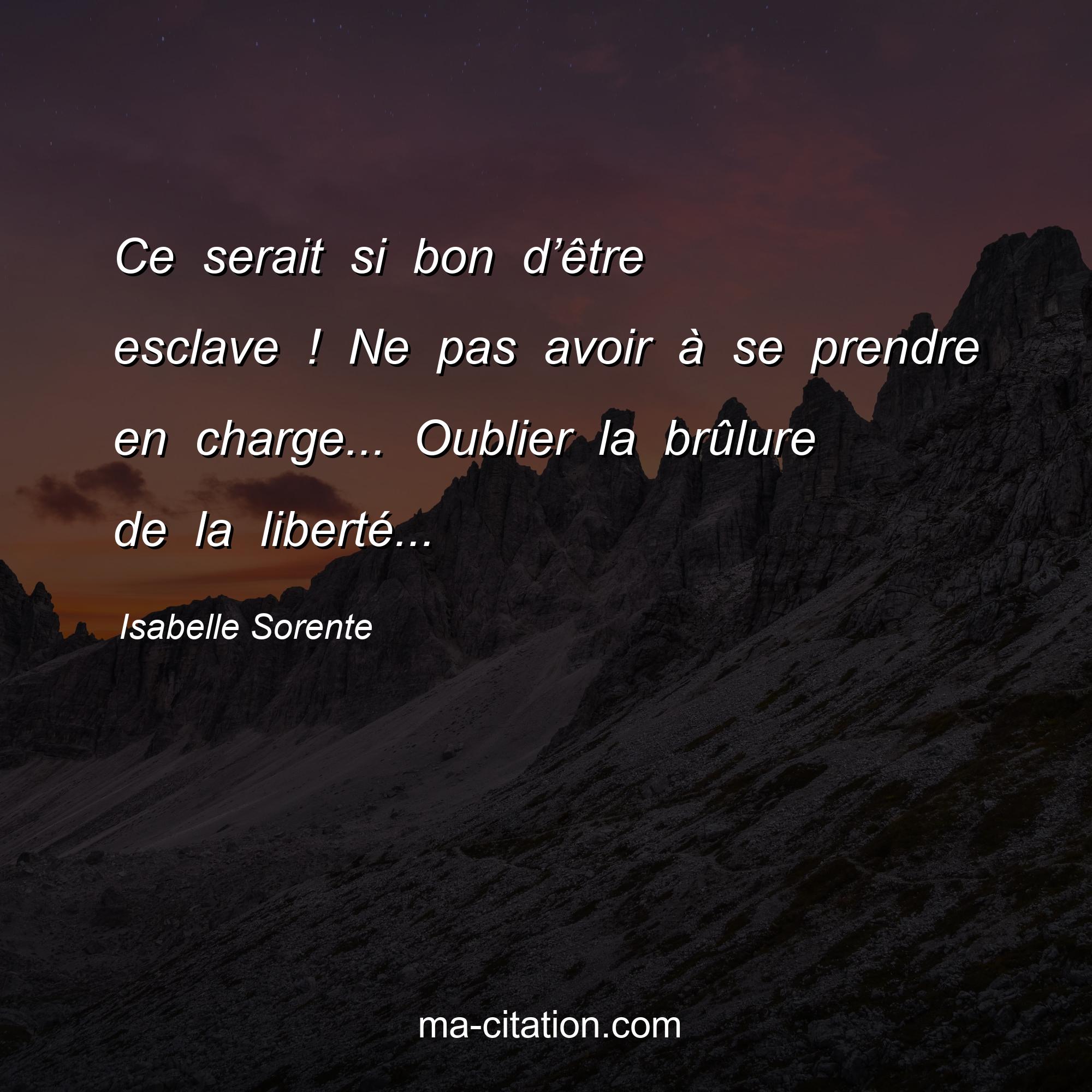Citation sur la vie d'Isabelle Sorente :Ce serait si bon d’être esclave ! Ne pas avoir à se prendre en charge... Oublier la brûlure de la liberté...