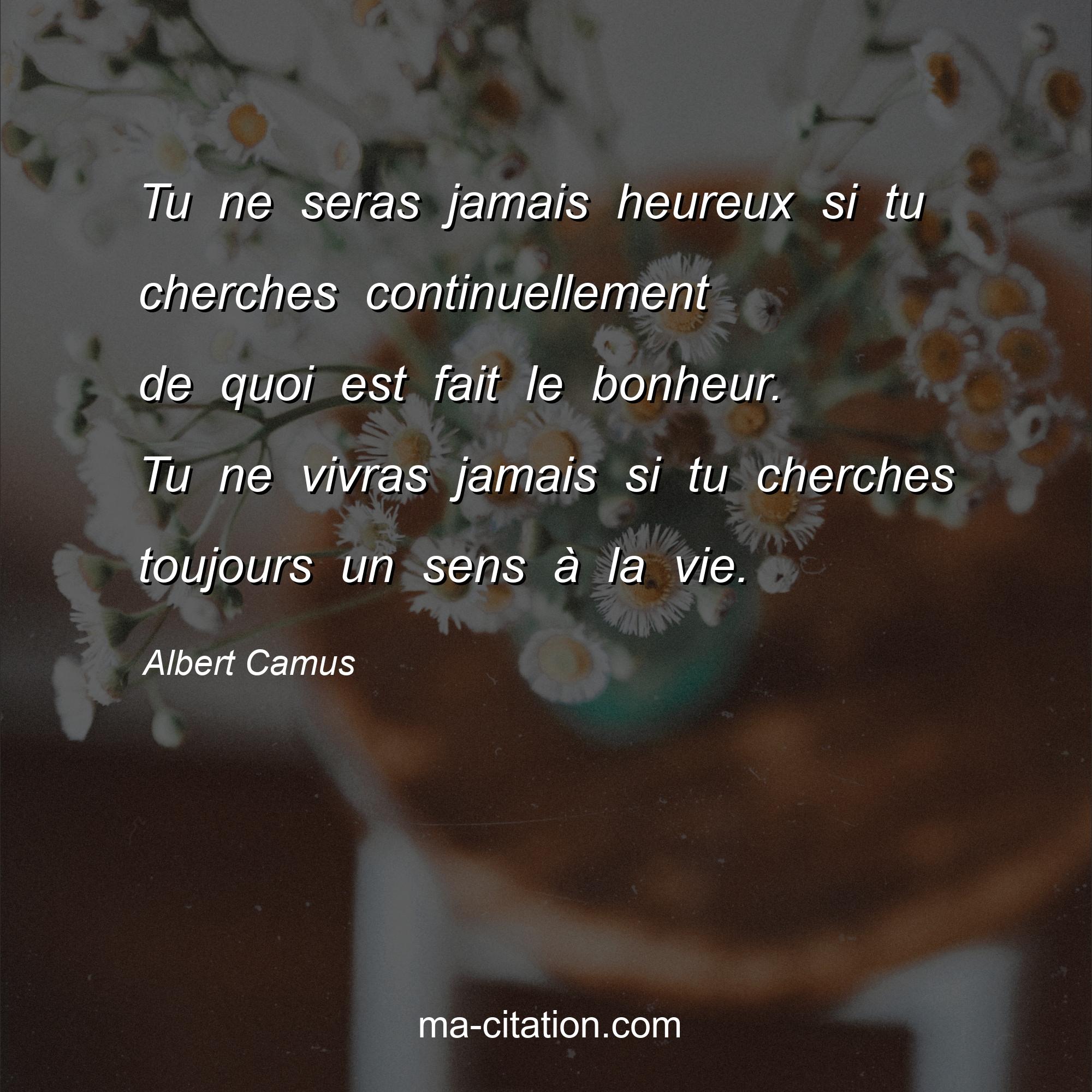 Citation sur la vie d'Albert Camus :Tu ne seras jamais heureux si tu cherches continuellement de quoi est fait le bonheur. Tu ne vivras jamais si tu cherches toujours un sens à la vie.