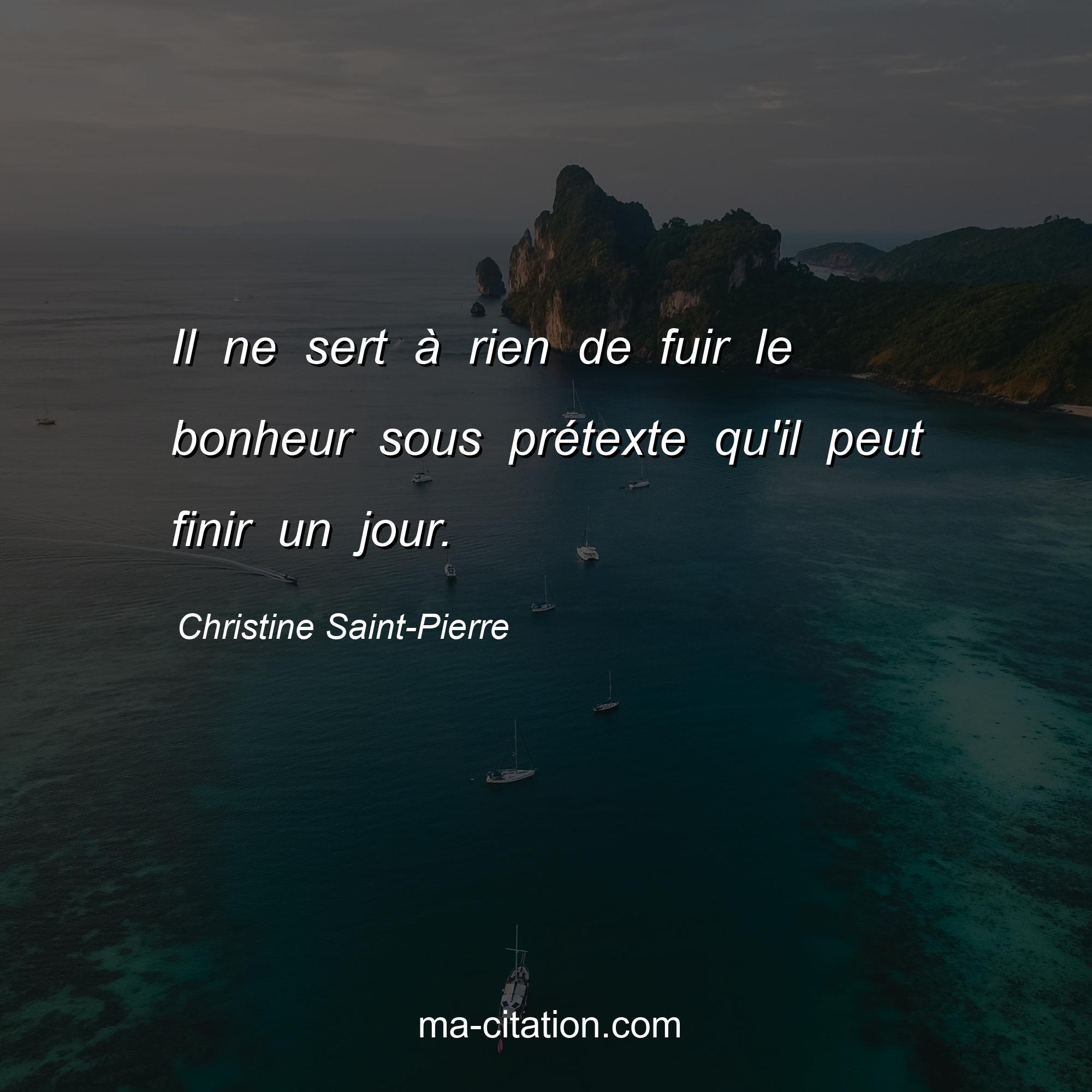 Citation sur la vie de Christine Saint-Pierre :Il ne sert à rien de fuir le bonheur sous prétexte qu'il peut finir un jour.