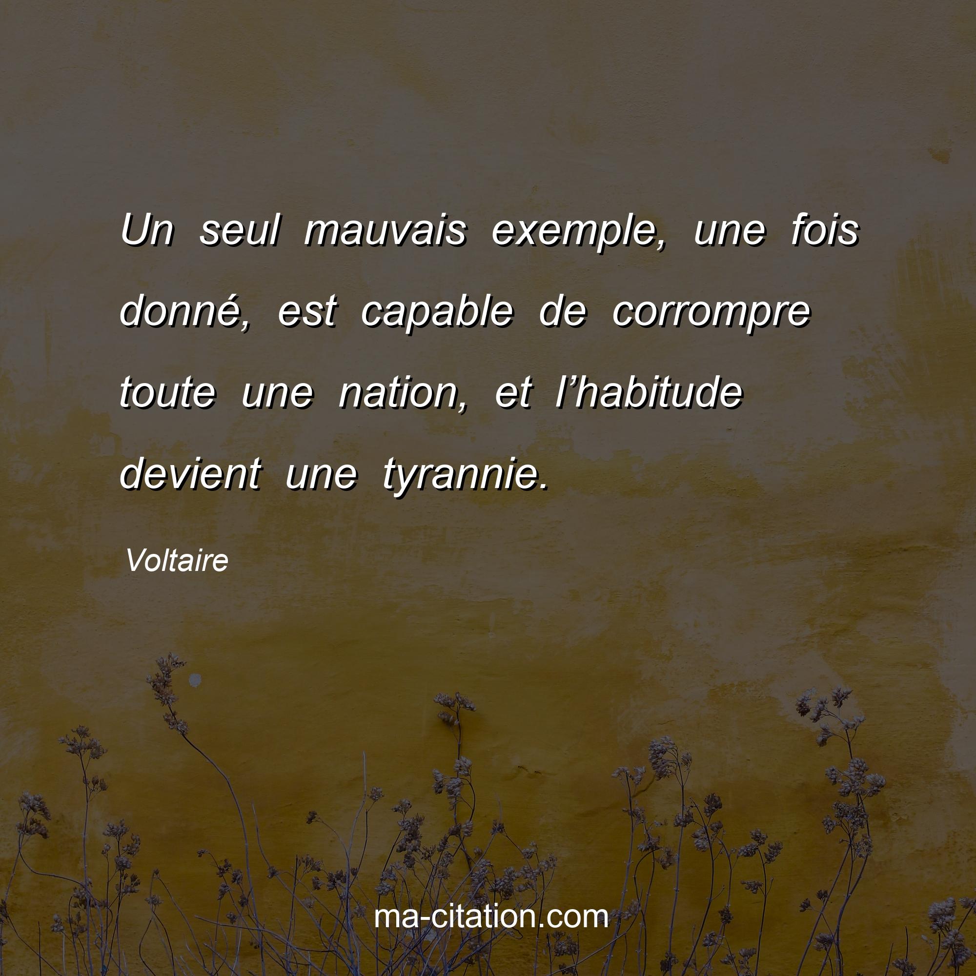 Citation sur la vie de Voltaire :Un seul mauvais exemple, une fois donné, est capable de corrompre toute une nation, et l’habitude devient une tyrannie.
