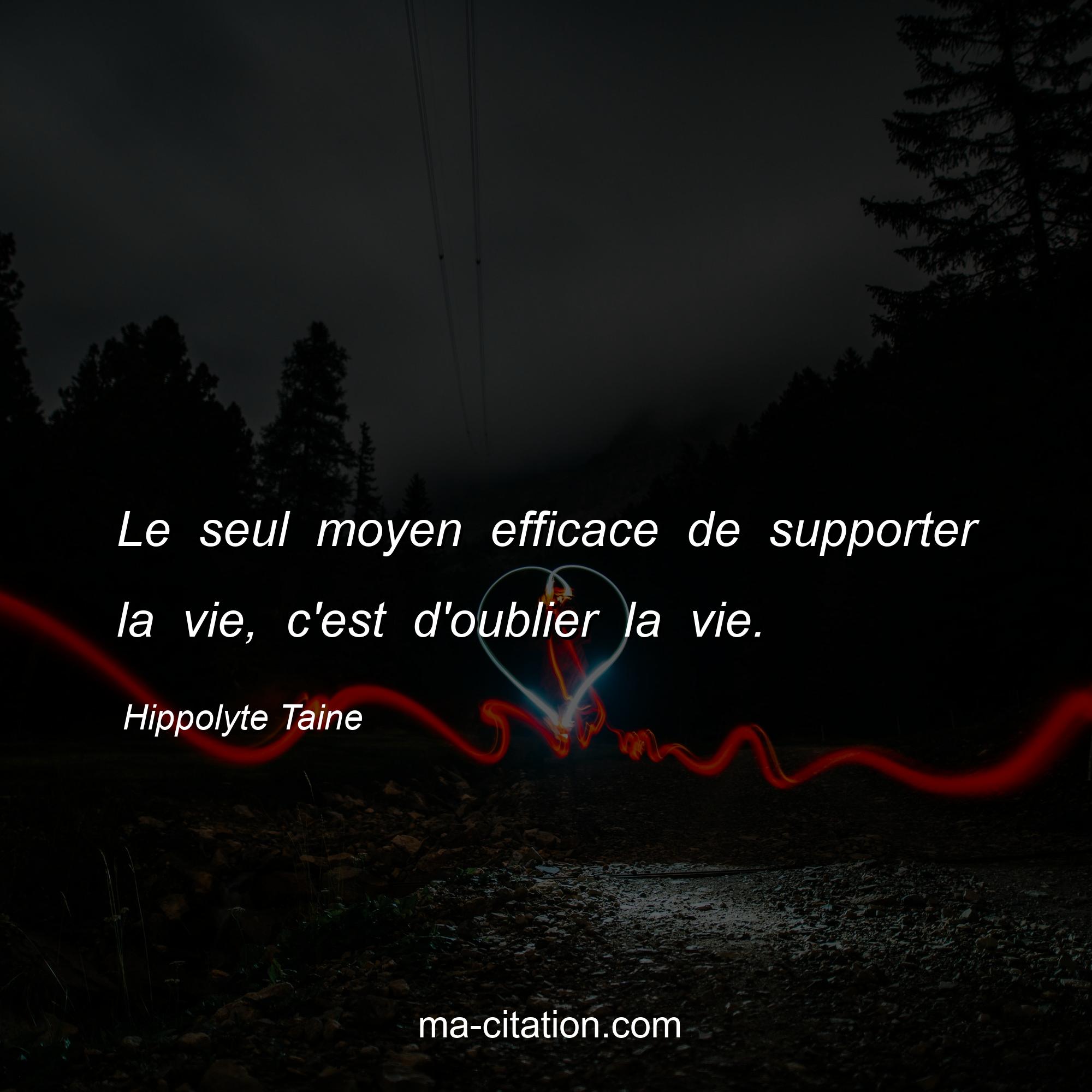 Citation sur la vie de Hippolyte Taine :Le seul moyen efficace de supporter la vie, c'est d'oublier la vie.