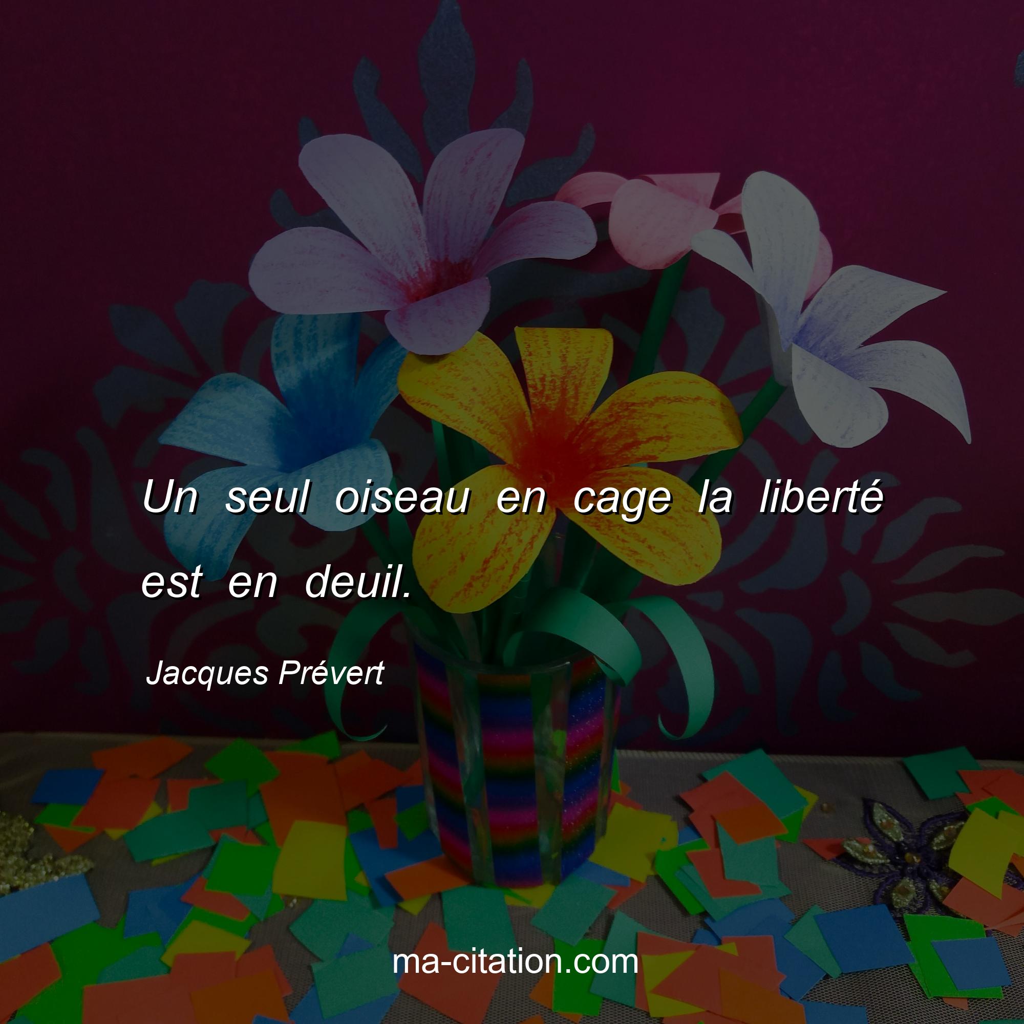 Citation sur la vie de Jacques Prévert :Un seul oiseau en cage la liberté est en deuil.