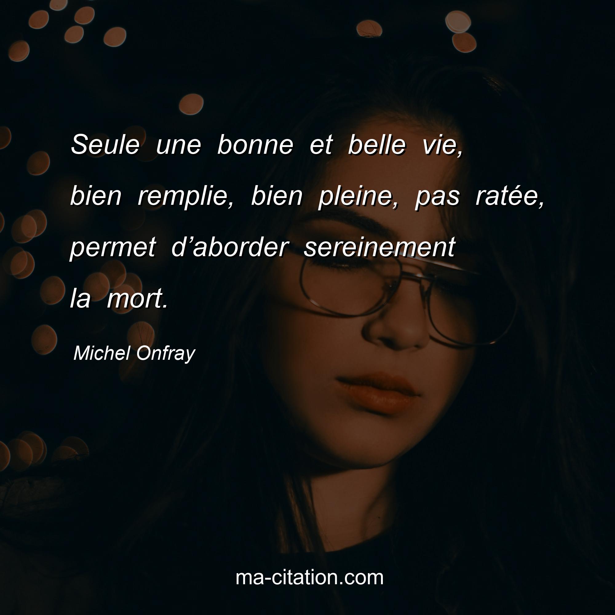Citation sur la vie de Michel Onfray :Seule une bonne et belle vie, bien remplie, bien pleine, pas ratée, permet d’aborder sereinement la mort.