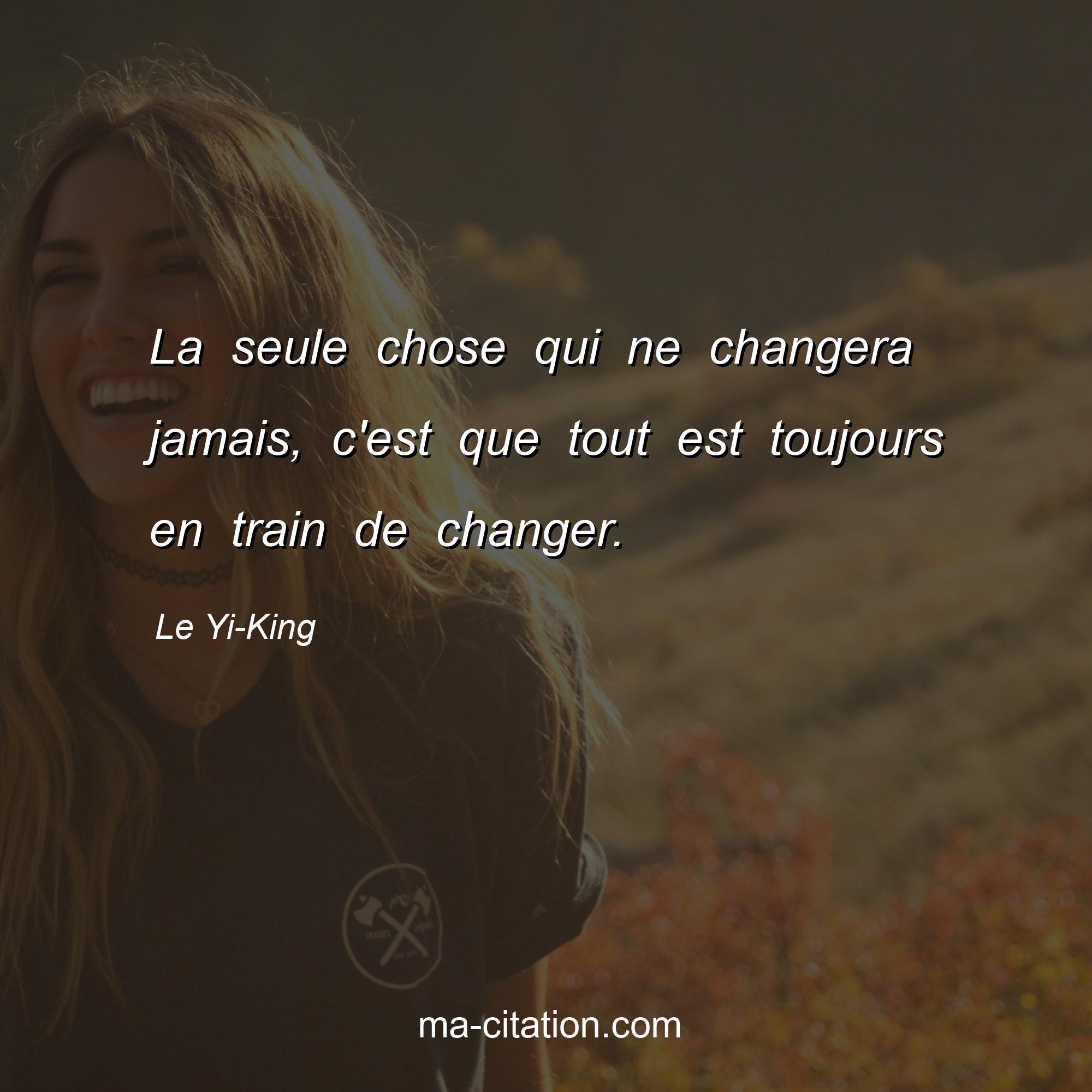 Citation sur la vie de Le Yi-King :La seule chose qui ne changera jamais, c'est que tout est toujours en train de changer.