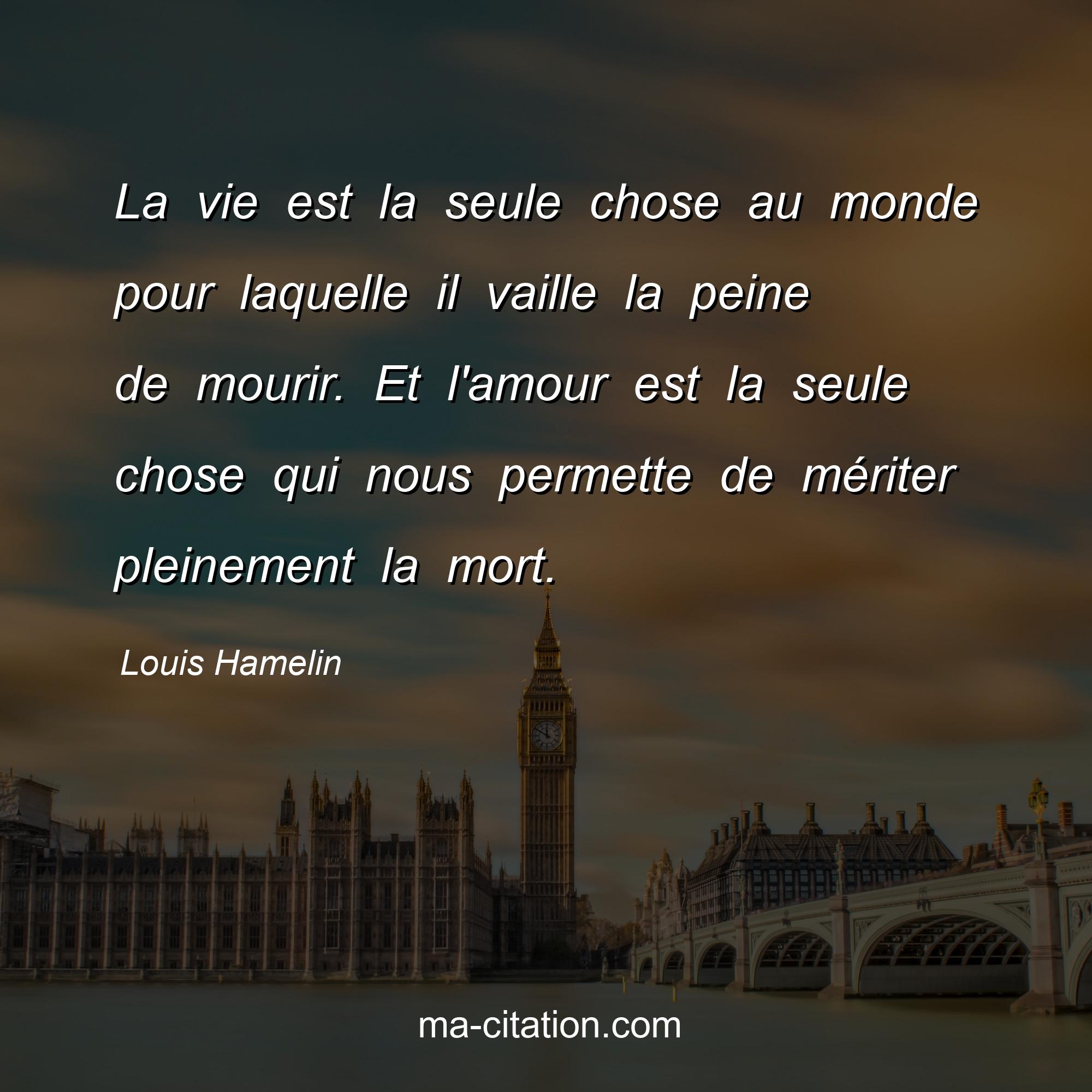 Citation sur la vie de Louis Hamelin :La vie est la seule chose au monde pour laquelle il vaille la peine de mourir. Et l'amour est la seule chose qui nous permette de mériter pleinement la mort.