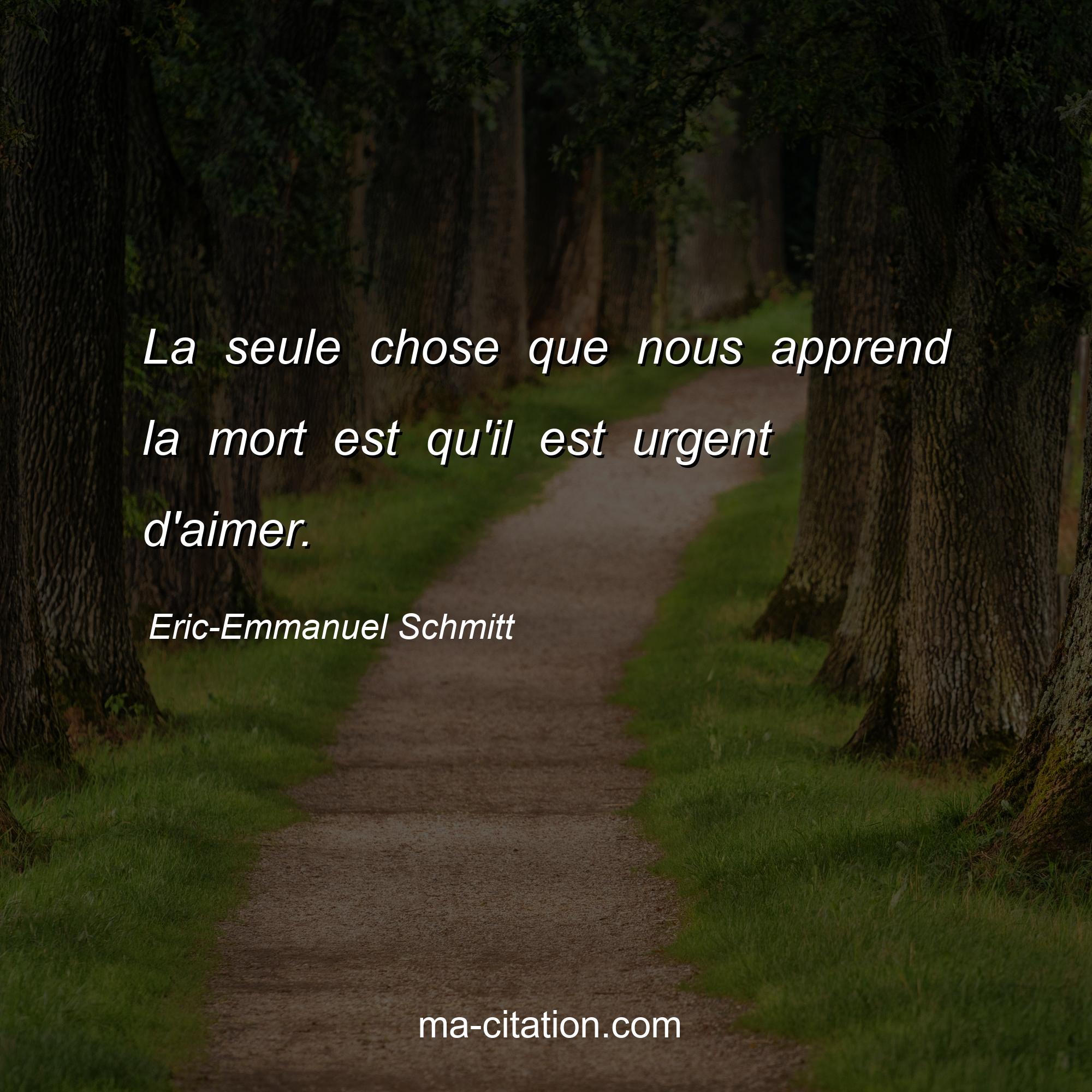 Citation sur la vie d'Eric-Emmanuel Schmitt :La seule chose que nous apprend la mort est qu'il est urgent d'aimer.