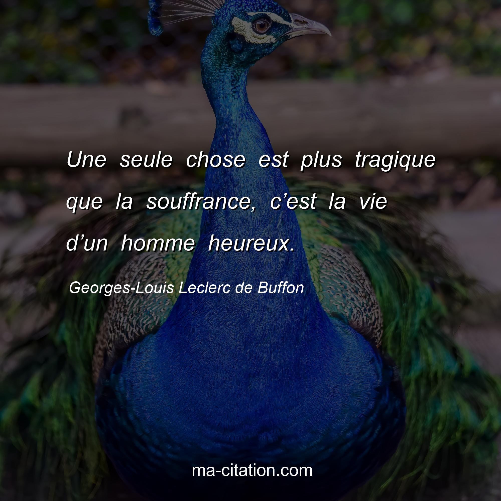 Citation sur la vie de Georges-Louis Leclerc de Buffon :Une seule chose est plus tragique que la souffrance, c’est la vie d’un homme heureux.