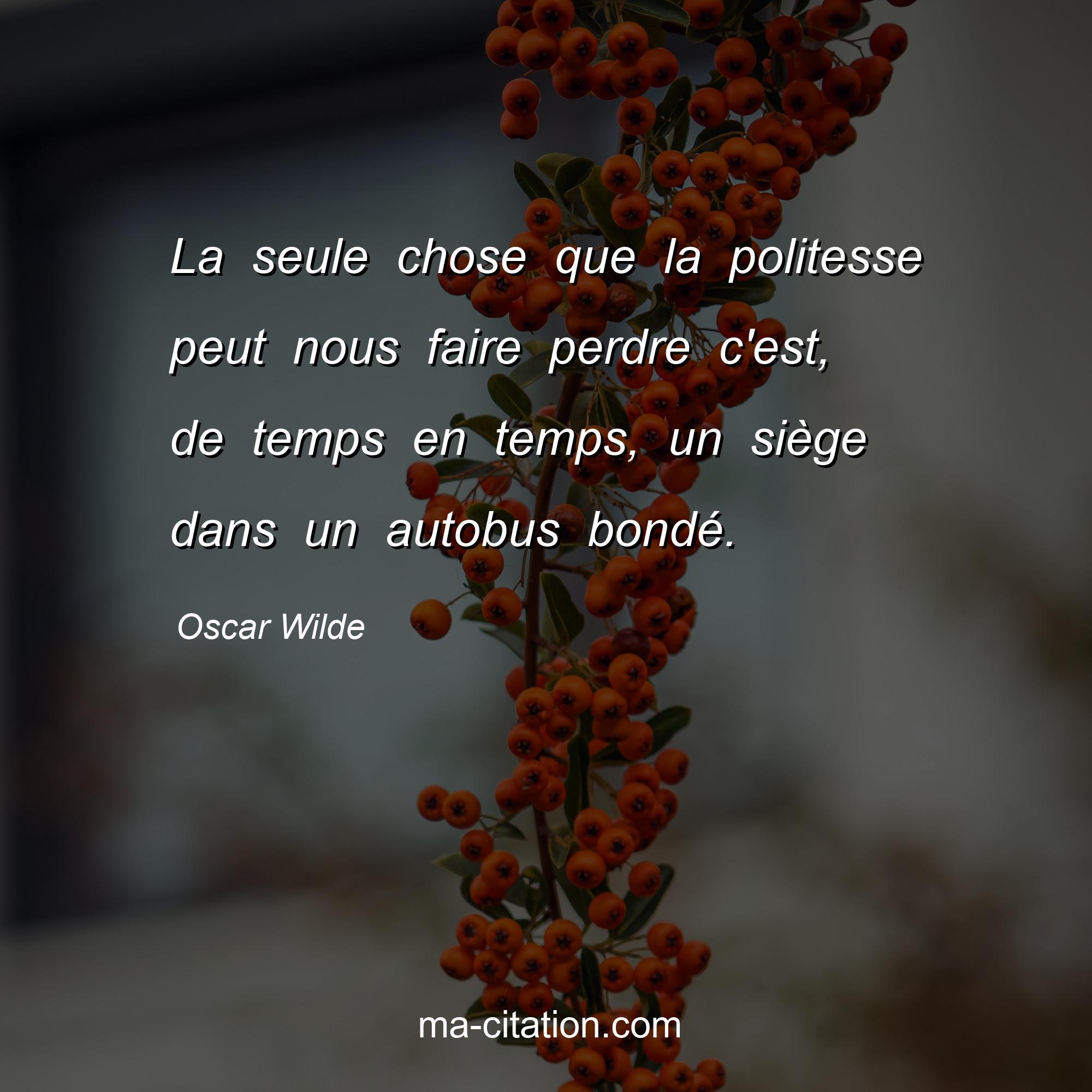 Citation sur la vie d'Oscar Wilde :La seule chose que la politesse peut nous faire perdre c'est, de temps en temps, un siège dans un autobus bondé.