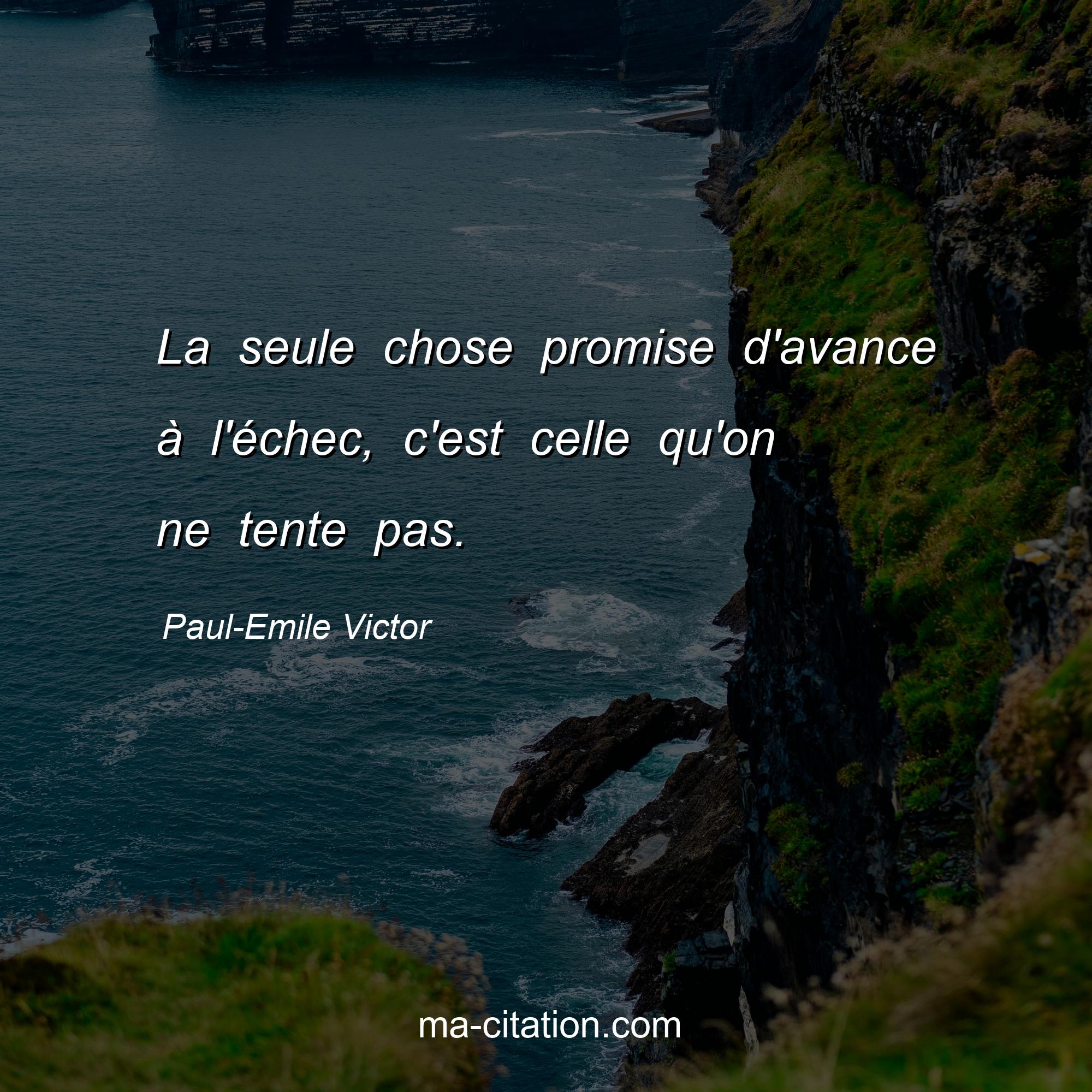 Paul-Emile Victor est l'auteur de la citation sur la vie "La seule chose promise d'avance à l'échec, c'est celle qu'on ne tente pas.".