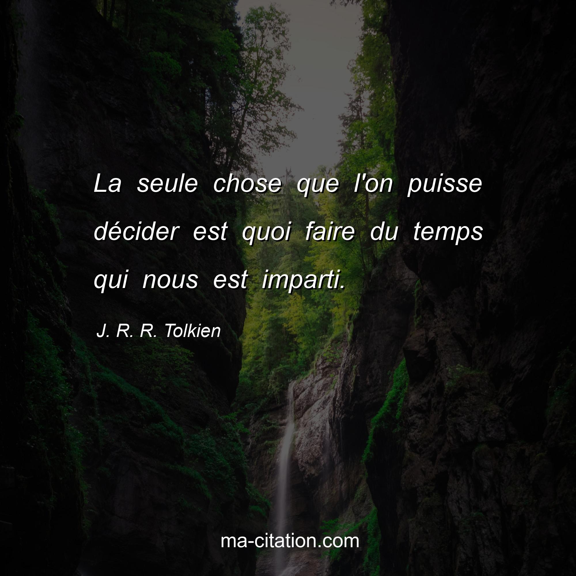 Citation sur la vie de J. R. R. Tolkien :La seule chose que l'on puisse décider est quoi faire du temps qui nous est imparti.