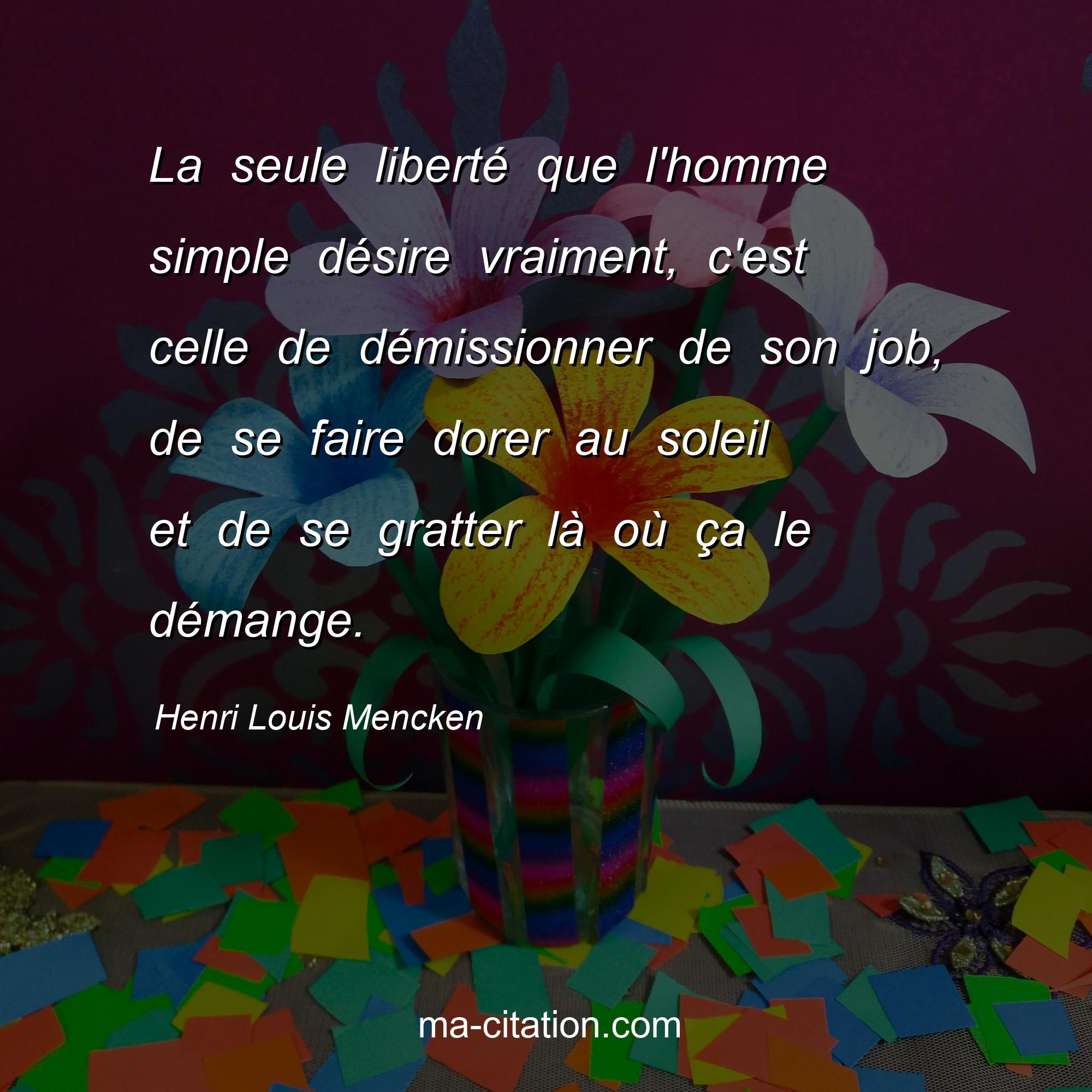 Citation sur la vie de Henri Louis Mencken :La seule liberté que l'homme simple désire vraiment, c'est celle de démissionner de son job, de se faire dorer au soleil et de se gratter là où ça le démange.