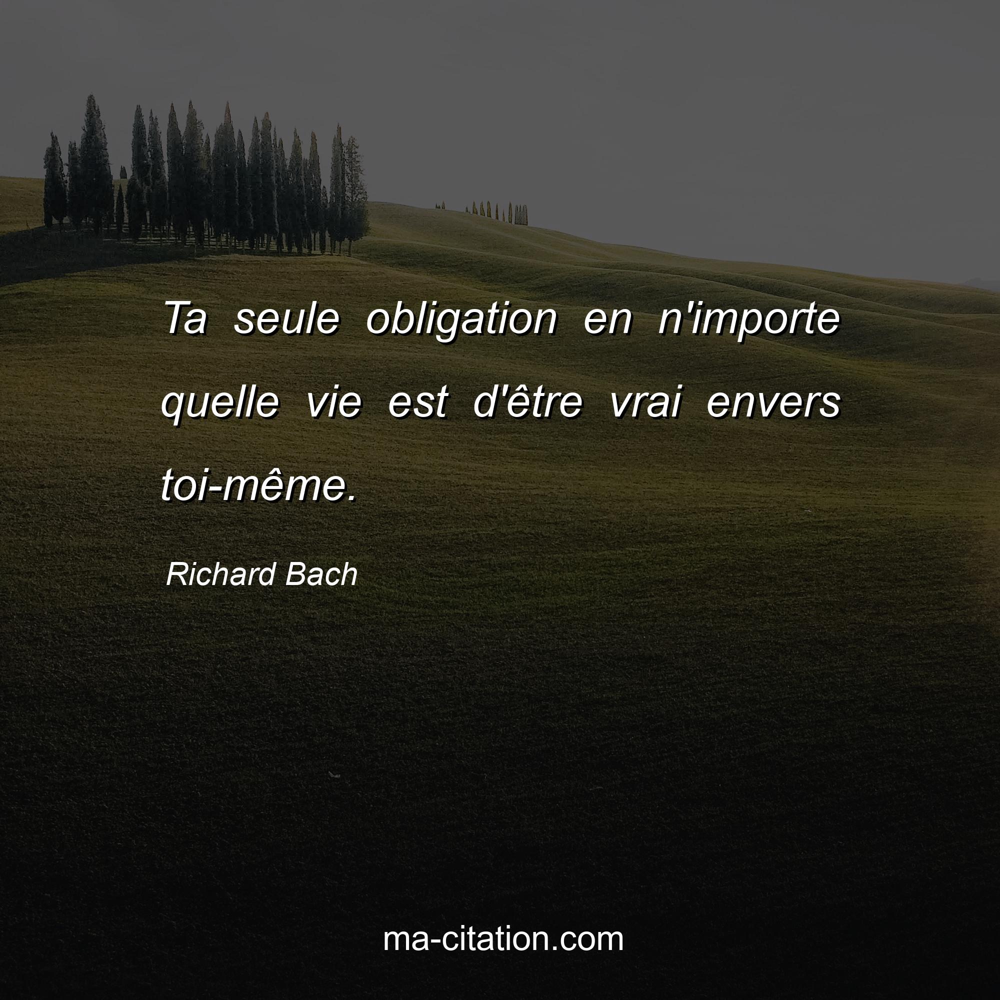Citation sur la vie de Richard Bach :Ta seule obligation en n'importe quelle vie est d'être vrai envers toi-même.