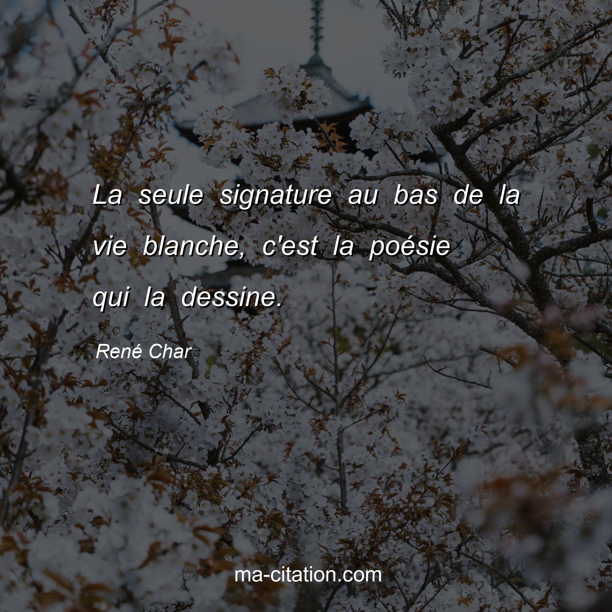 Citation sur la vie de René Char :La seule signature au bas de la vie blanche, c'est la poésie qui la dessine.
