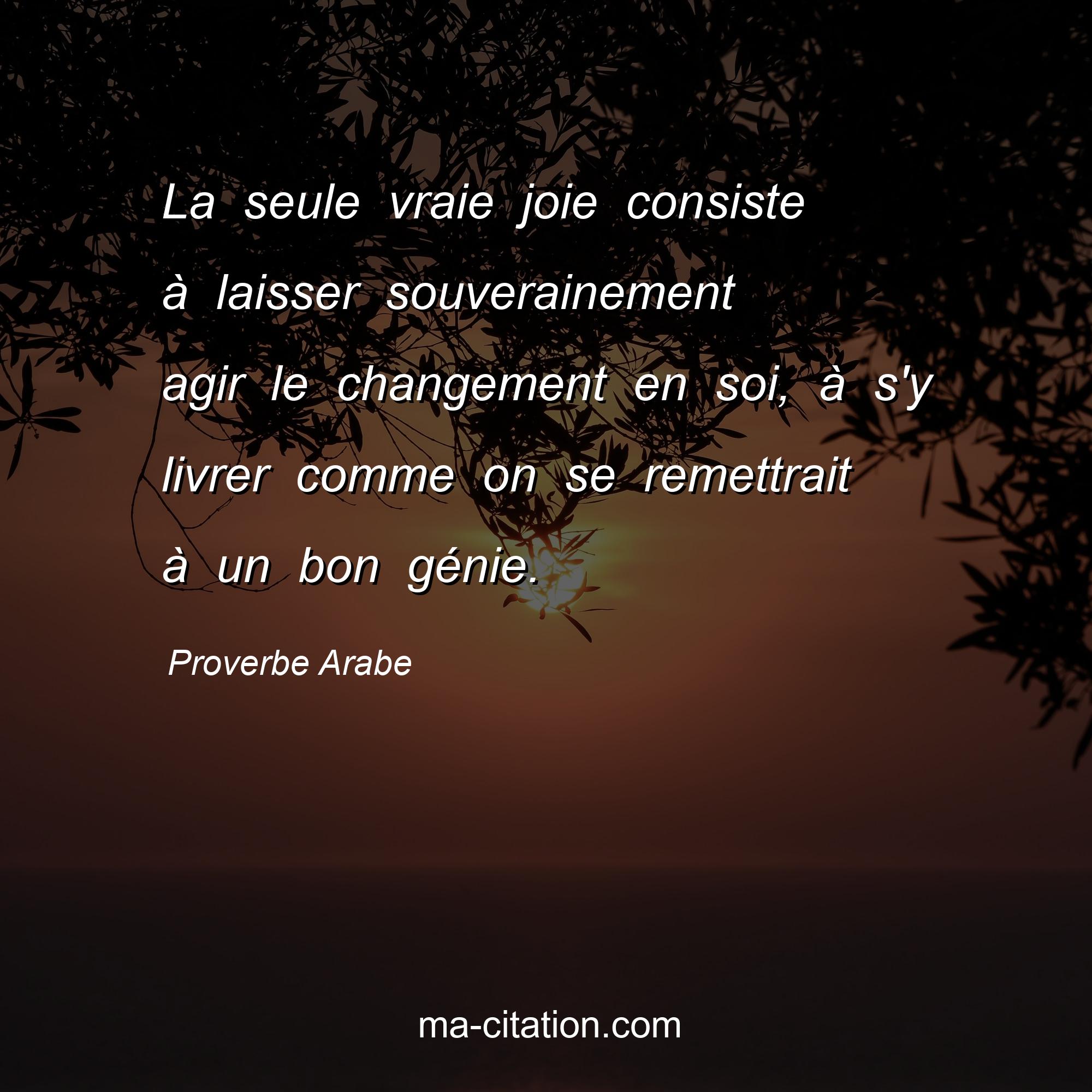 Proverbe Arabe sur la vie :La seule vraie joie consiste à laisser souverainement agir le changement en soi, à s'y livrer comme on se remettrait à un bon génie.