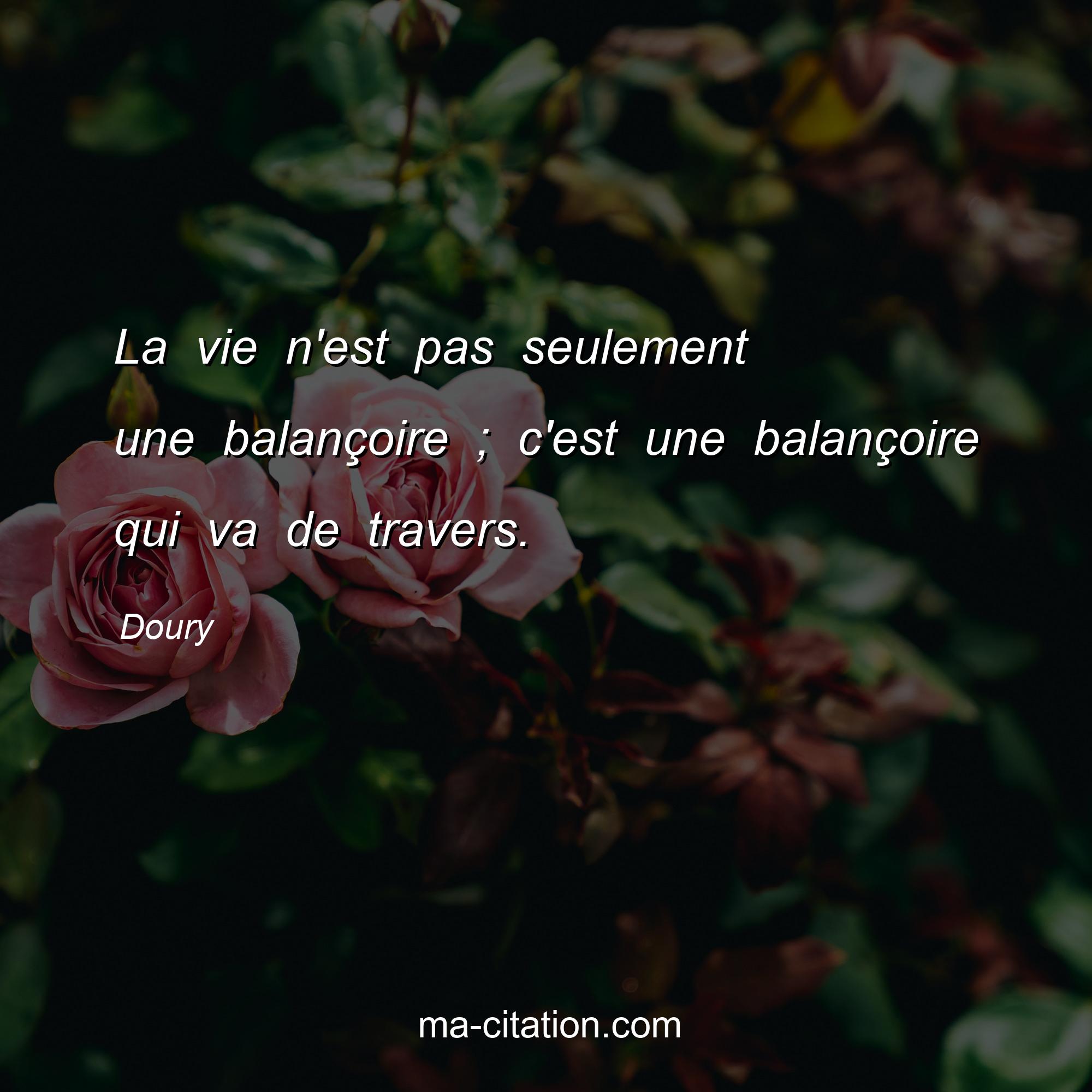Citation sur la vie de Doury :La vie n'est pas seulement une balançoire ; c'est une balançoire qui va de travers.