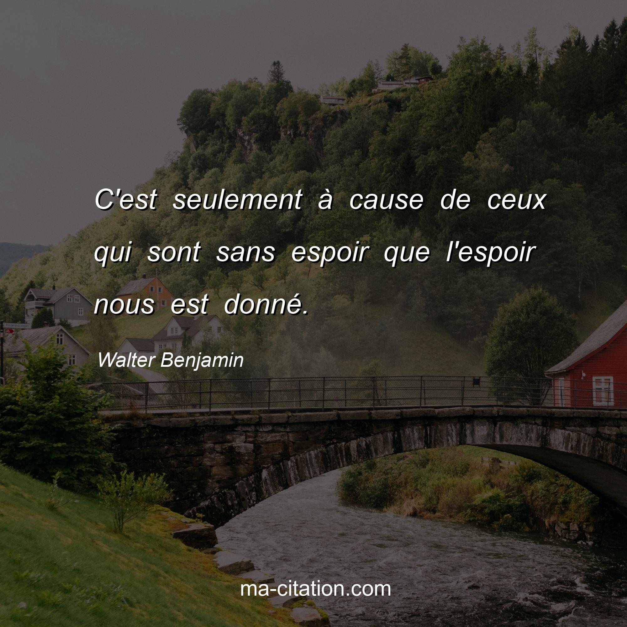 Walter Benjamin est l'auteur de la citation sur la vie "C'est seulement à cause de ceux qui sont sans espoir que l'espoir nous est donné.".