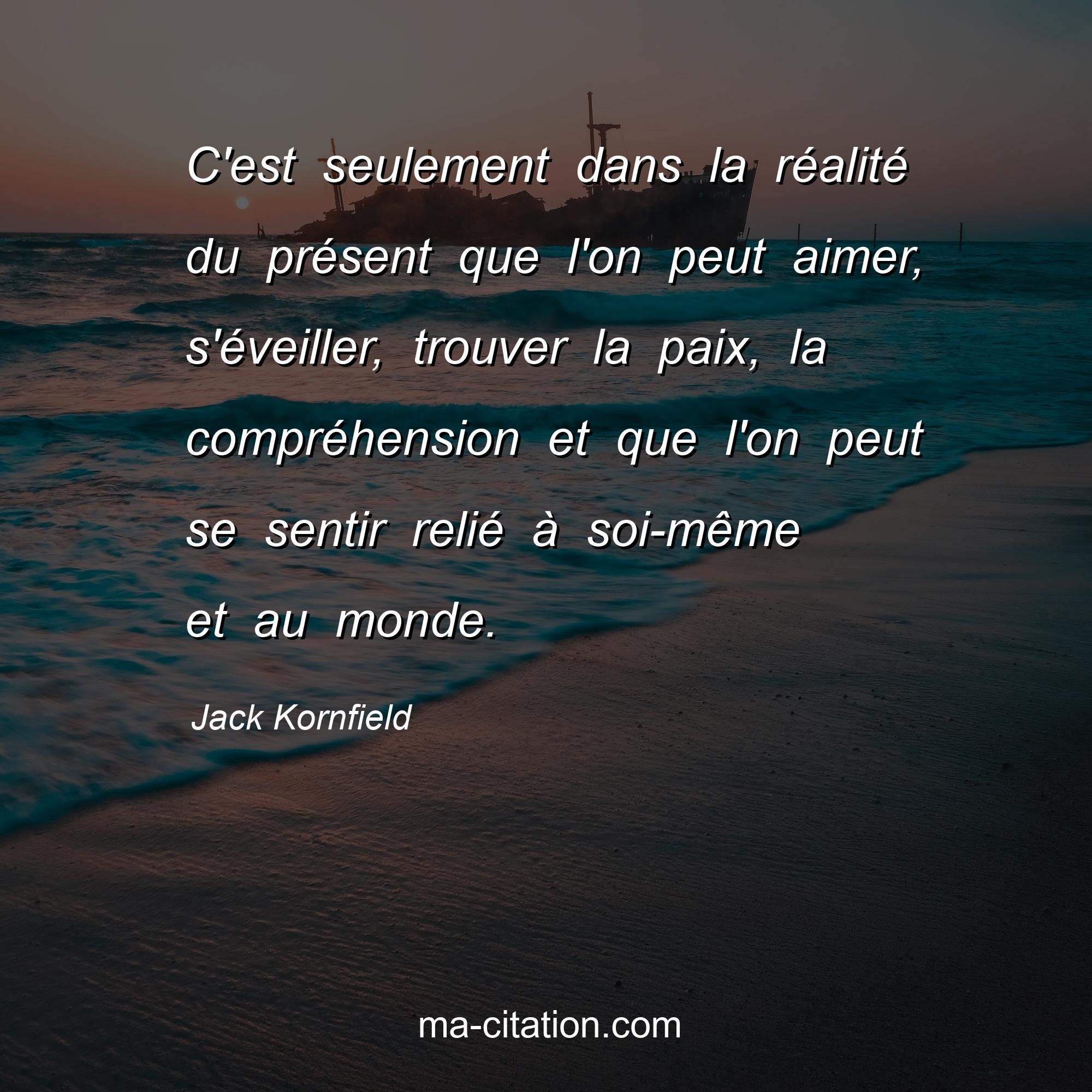 Citation sur la vie de Jack Kornfield :C'est seulement dans la réalité du présent que l'on peut aimer, s'éveiller, trouver la paix, la compréhension et que l'on peut se sentir relié à soi-même et au monde.