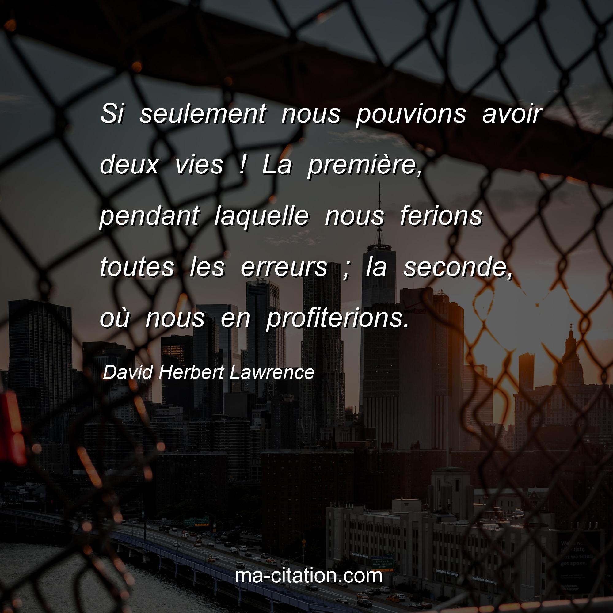Citation sur la vie de David Herbert Lawrence :Si seulement nous pouvions avoir deux vies ! La première, pendant laquelle nous ferions toutes les erreurs ; la seconde, où nous en profiterions.