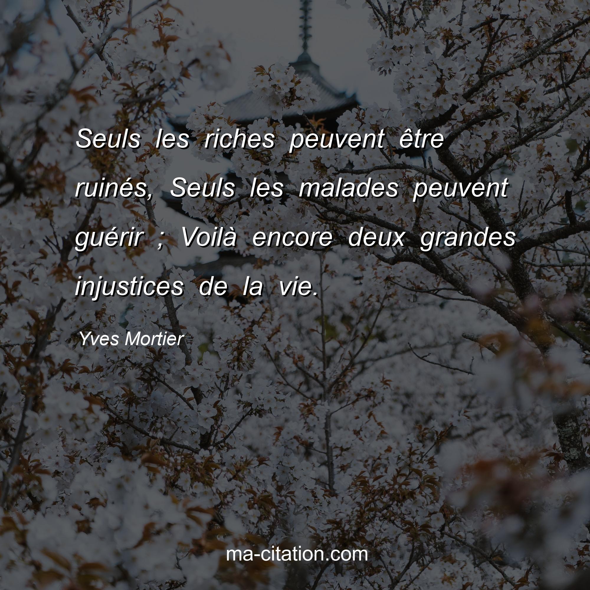 Yves Mortier est l'auteur de la citation sur la vie "Seuls les riches peuvent être ruinés, Seuls les malades peuvent guérir ; Voilà encore deux grandes injustices de la vie.".