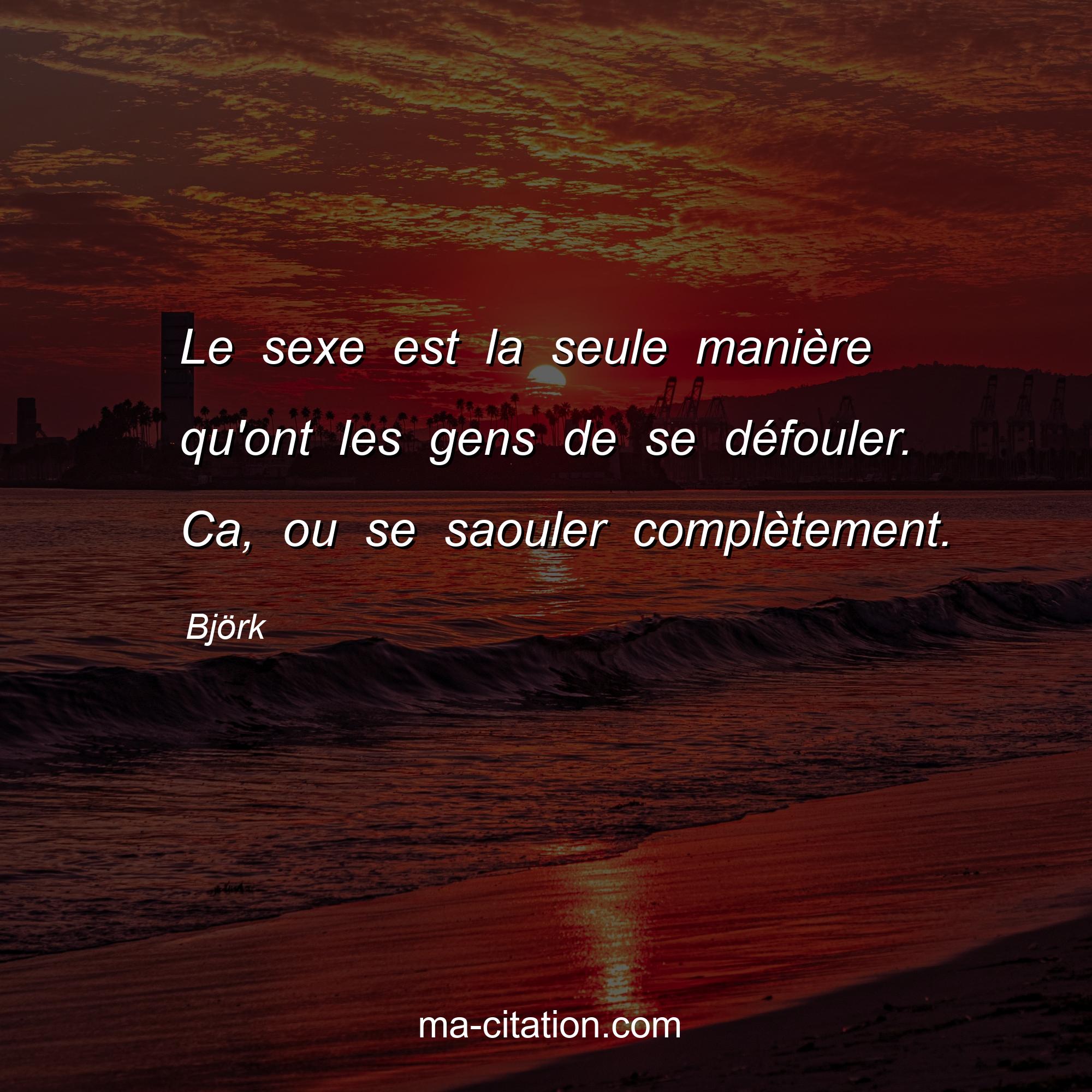 Björk est l'auteur de la citation sur la vie "Le sexe est la seule manière qu'ont les gens de se défouler. Ca, ou se saouler complètement.".