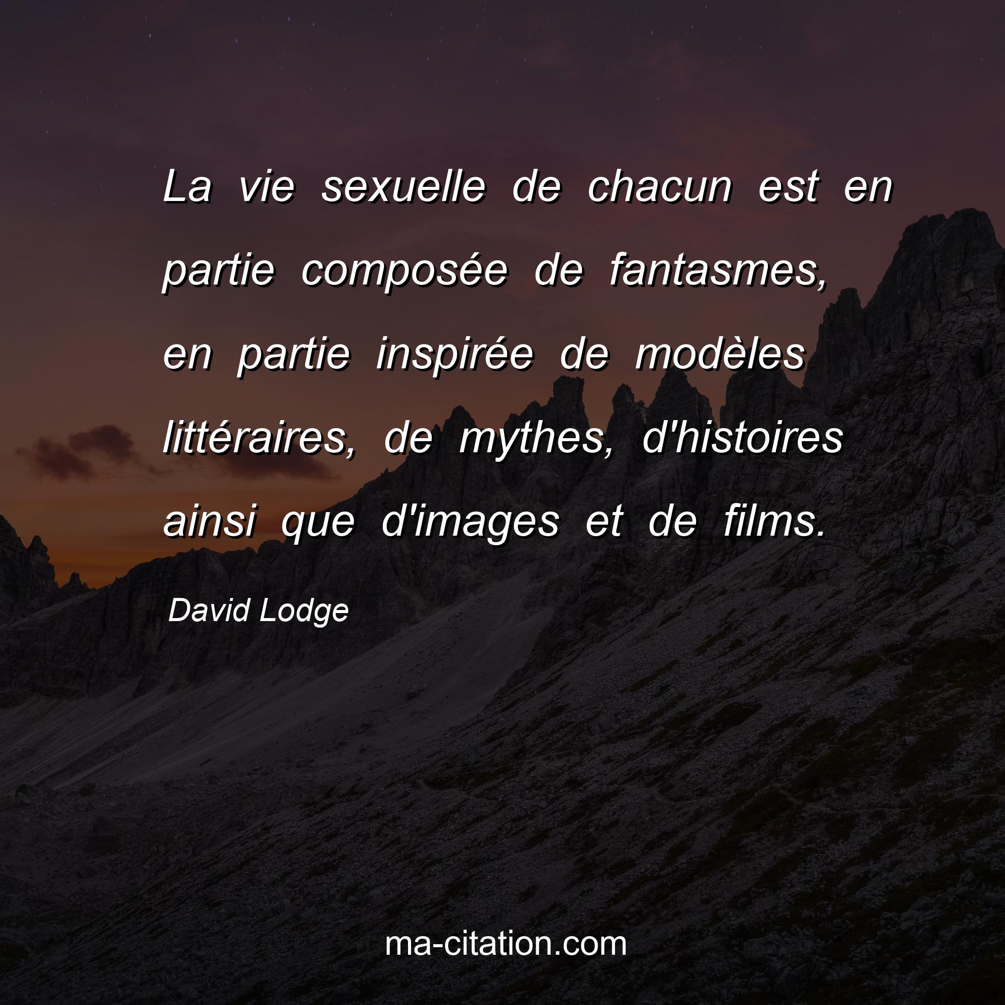 Citation sur la vie de David Lodge :La vie sexuelle de chacun est en partie composée de fantasmes, en partie inspirée de modèles littéraires, de mythes, d'histoires ainsi que d'images et de films.