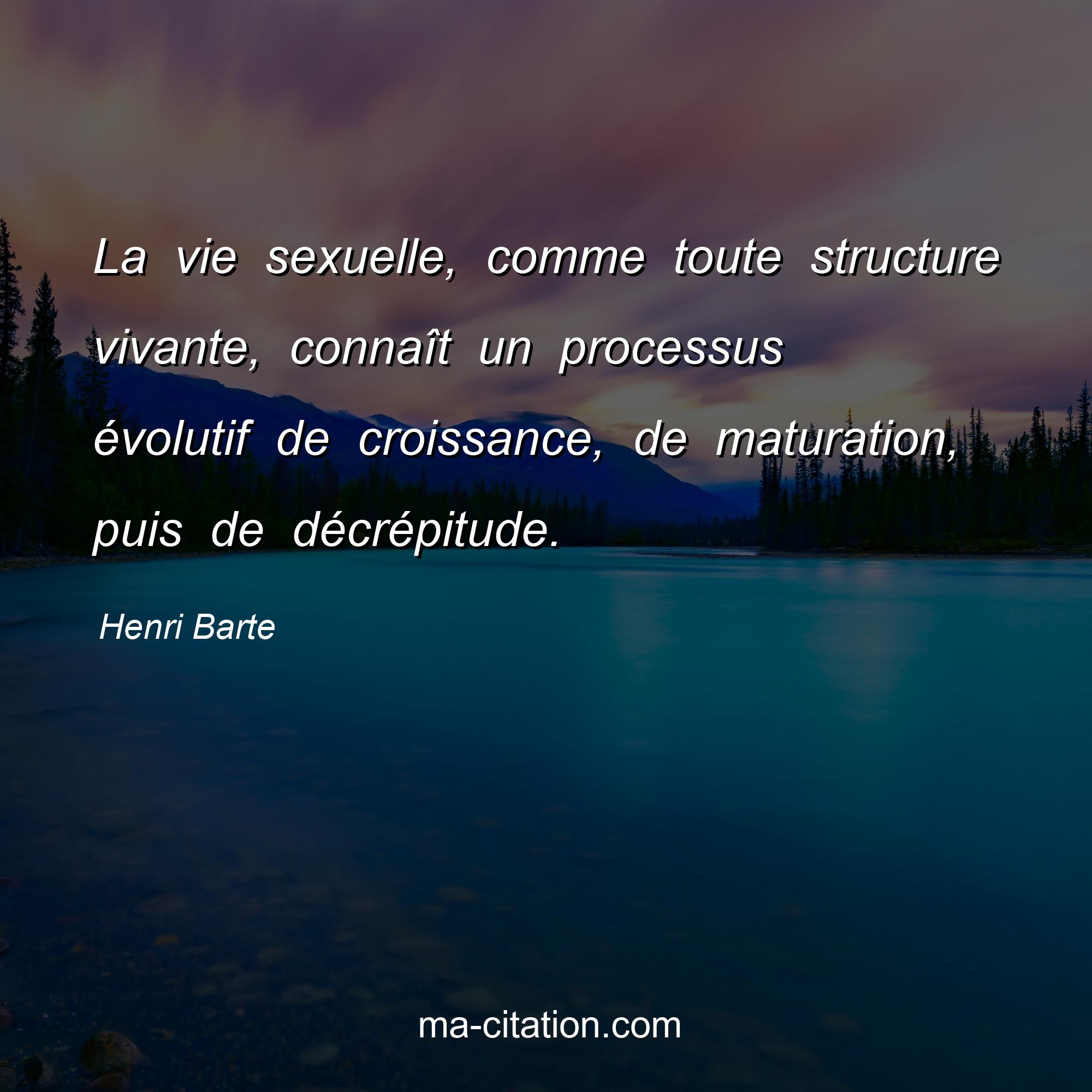 Citation sur la vie de Henri Barte :La vie sexuelle, comme toute structure vivante, connaît un processus évolutif de croissance, de maturation, puis de décrépitude.