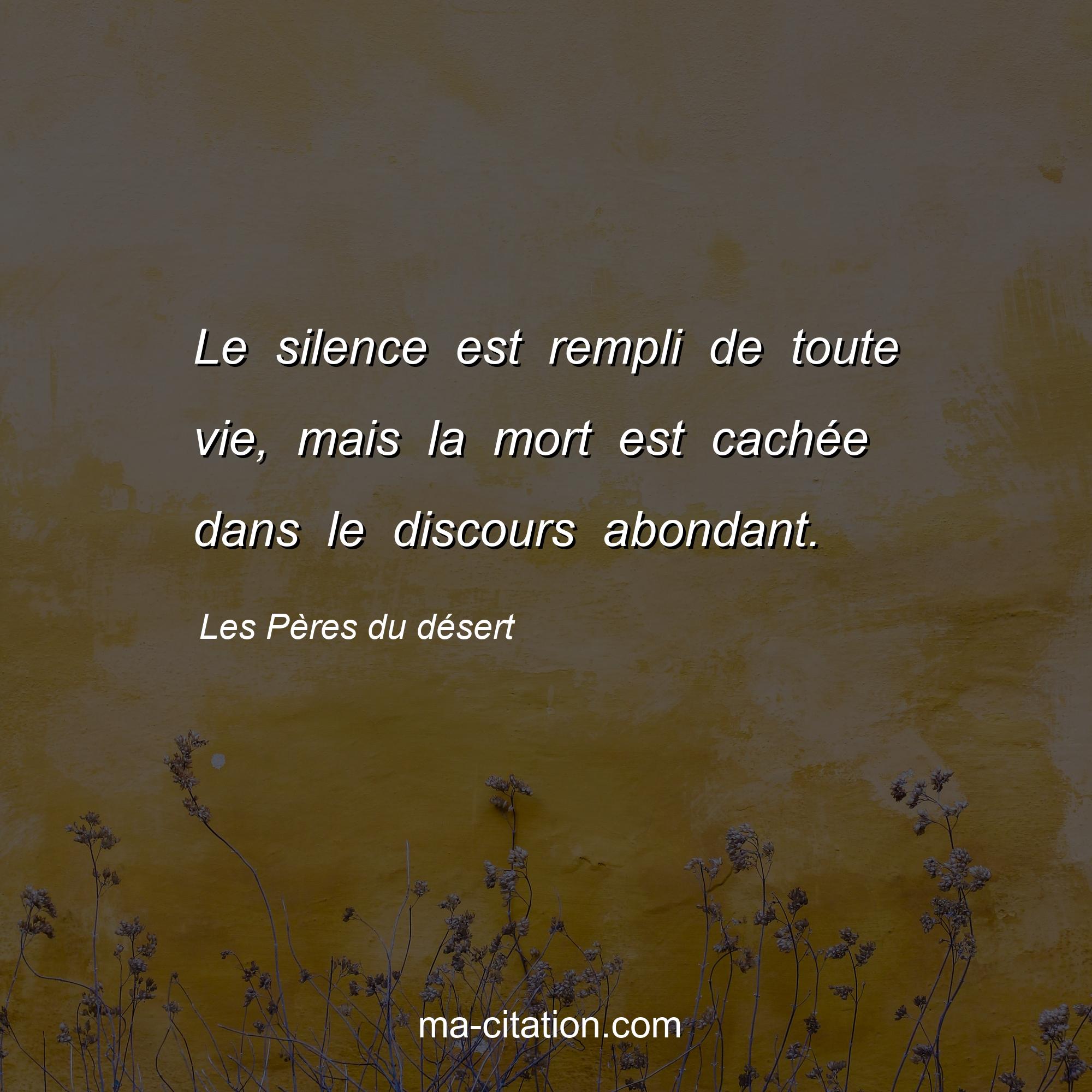 Citation sur la vie de Les Pères du désert :Le silence est rempli de toute vie, mais la mort est cachée dans le discours abondant.