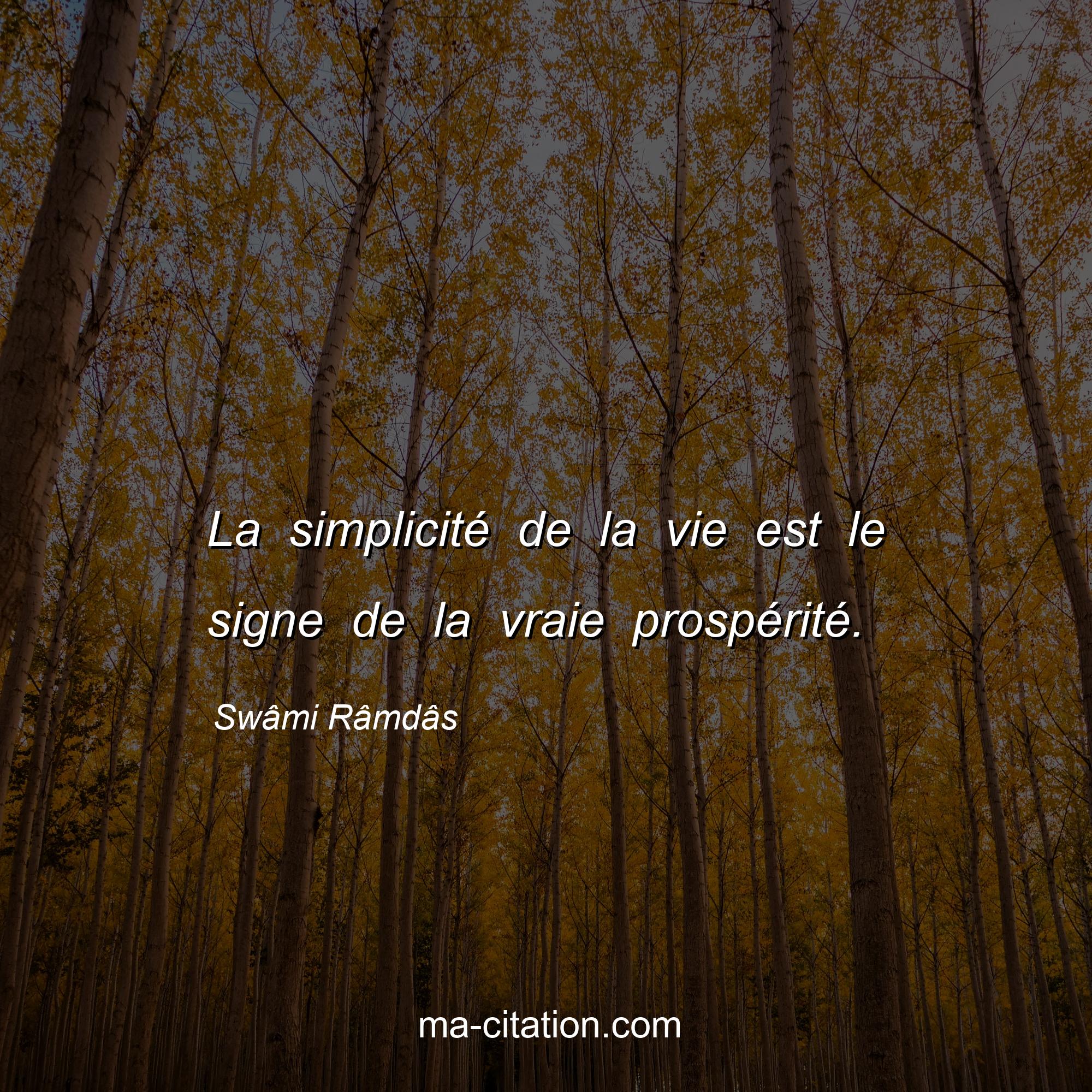 Swâmi Râmdâs est l'auteur de la citation sur la vie "La simplicité de la vie est le signe de la vraie prospérité.".