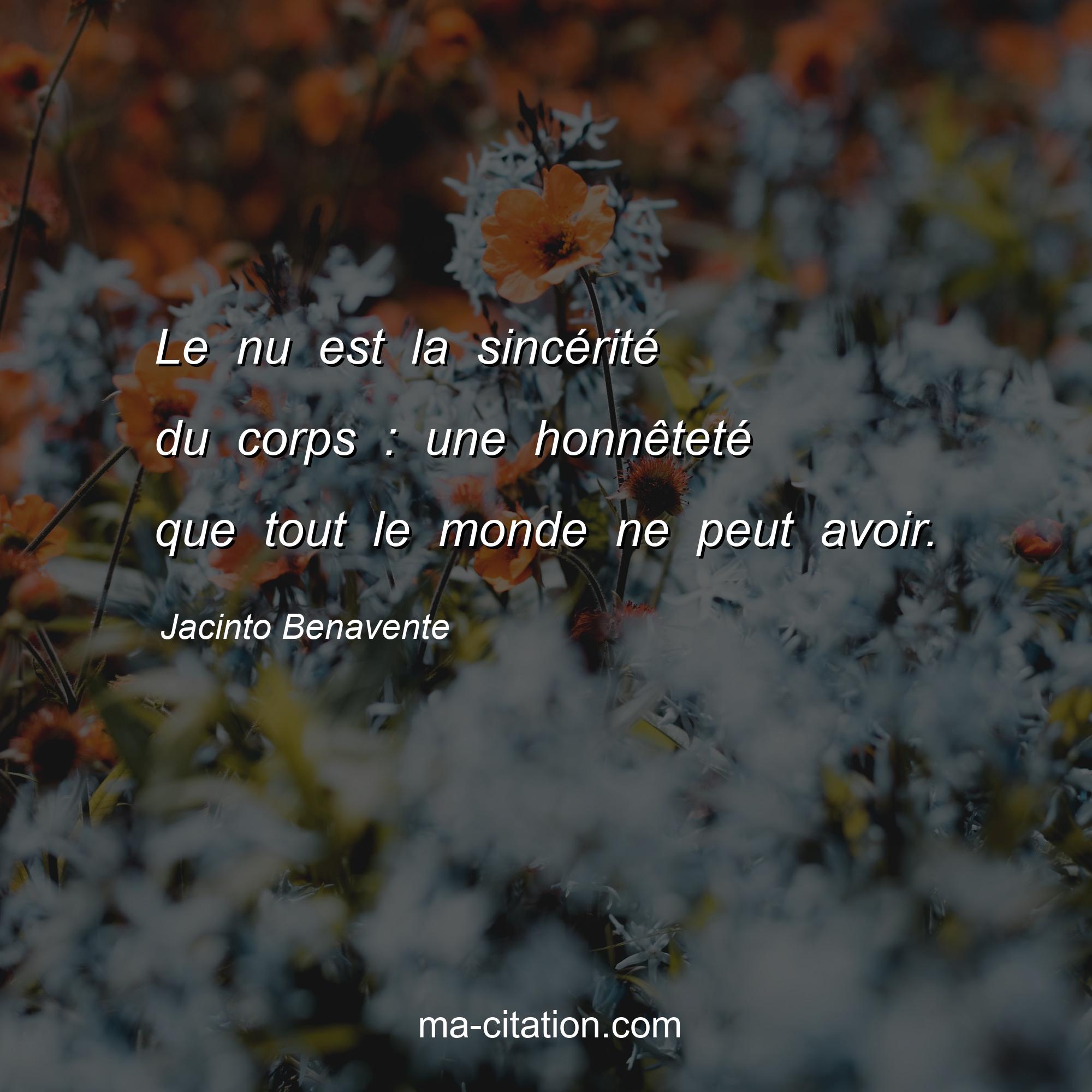 Citation sur la vie de Jacinto Benavente :Le nu est la sincérité du corps : une honnêteté que tout le monde ne peut avoir.