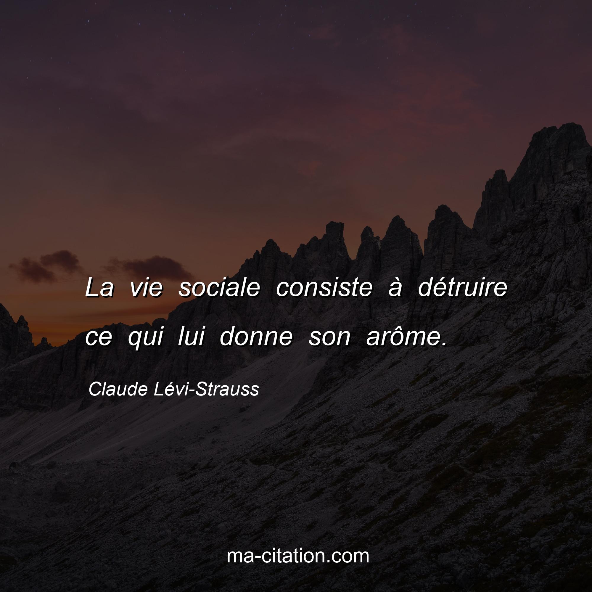 Citation sur la vie de Claude Lévi-Strauss :La vie sociale consiste à détruire ce qui lui donne son arôme.