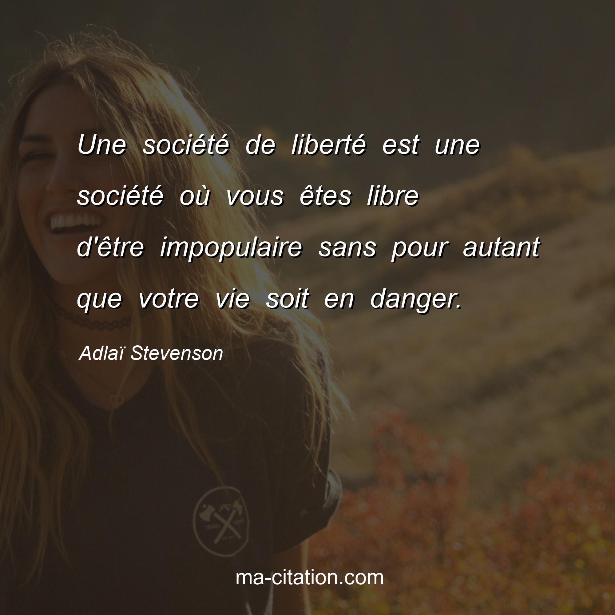 Citation sur la vie d'Adlaï Stevenson :Une société de liberté est une société où vous êtes libre d'être impopulaire sans pour autant que votre vie soit en danger.