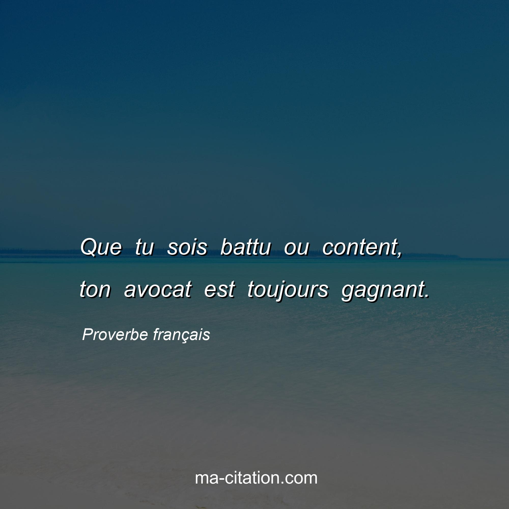 Proverbe français sur la vie :Que tu sois battu ou content, ton avocat est toujours gagnant.