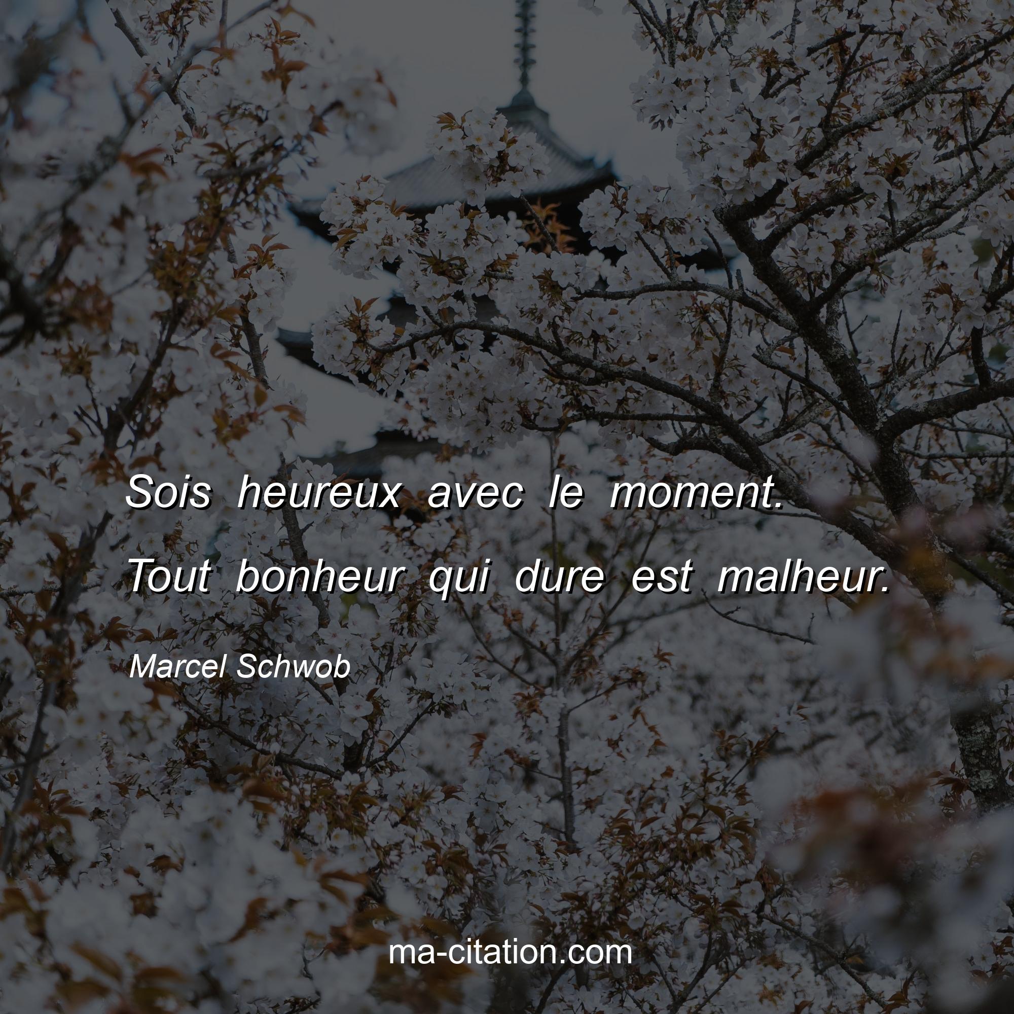 Citation sur la vie de Marcel Schwob :Sois heureux avec le moment. Tout bonheur qui dure est malheur.