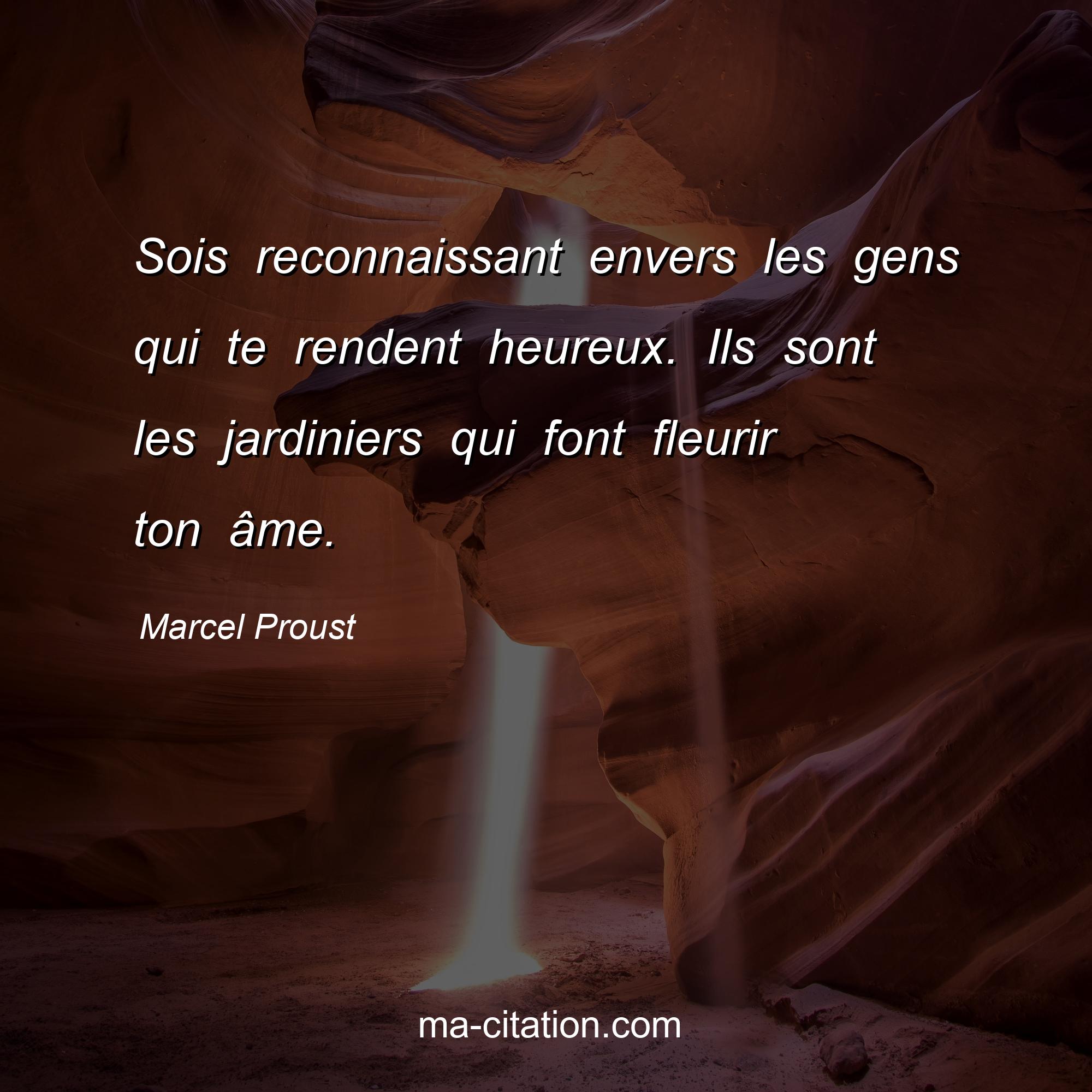 Citation sur la vie de Marcel Proust :Sois reconnaissant envers les gens qui te rendent heureux. Ils sont les jardiniers qui font fleurir ton âme.