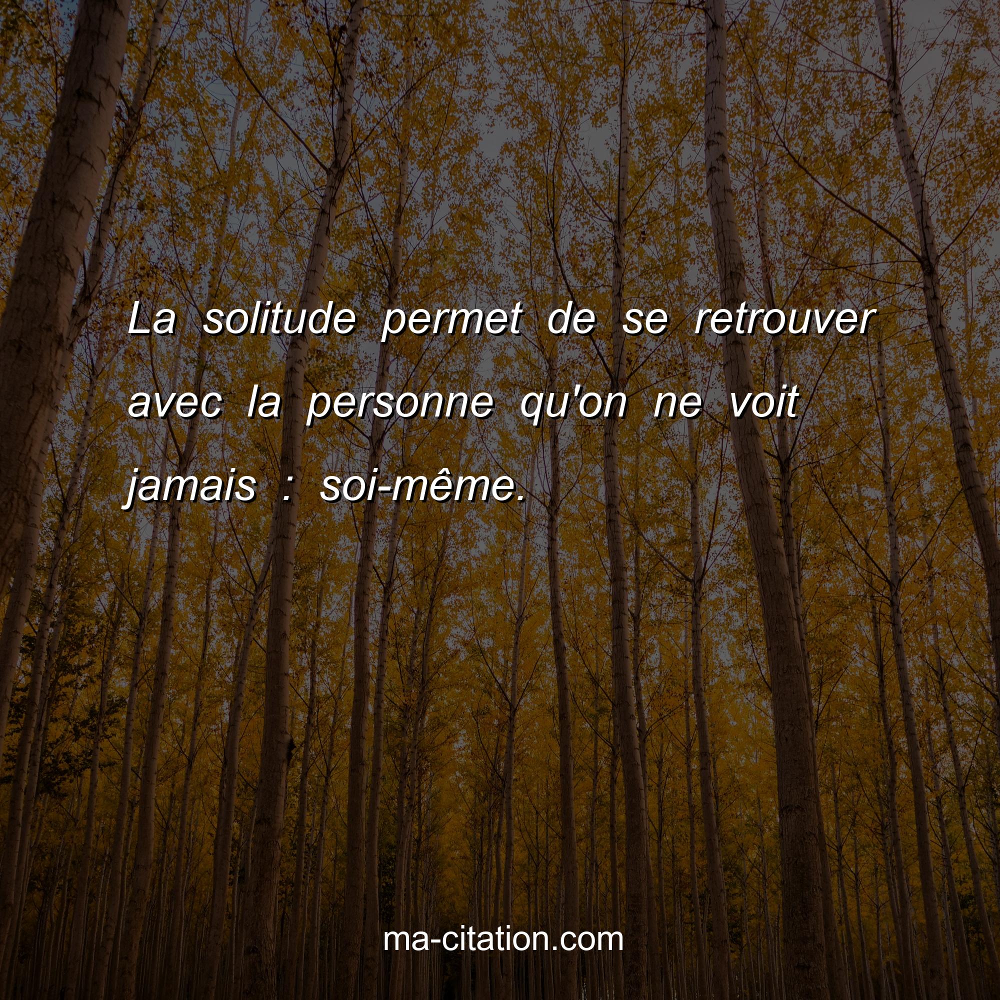 Citation sur la vie :La solitude permet de se retrouver avec la personne qu'on ne voit jamais : soi-même.