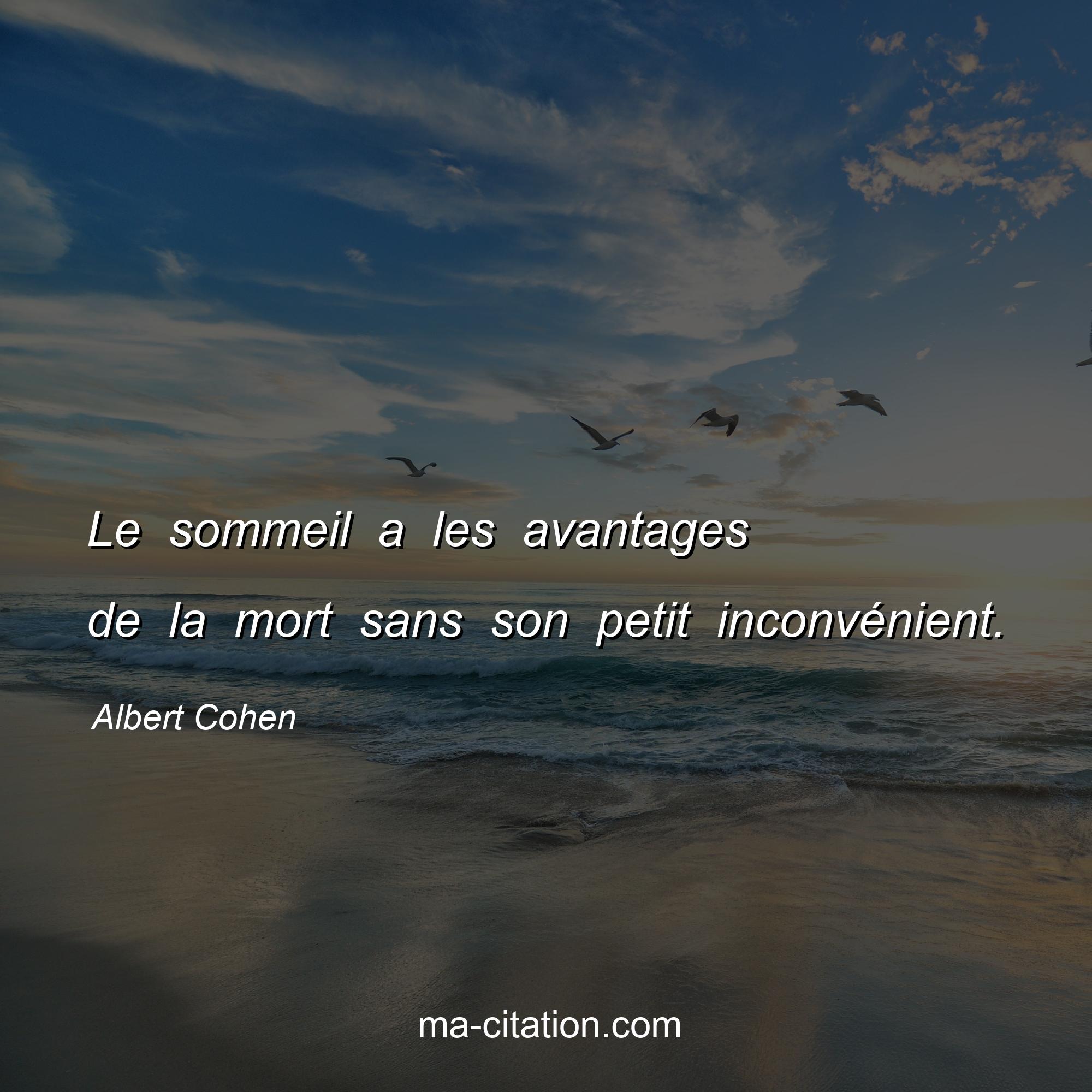 Citation sur la vie d'Albert Cohen :Le sommeil a les avantages de la mort sans son petit inconvénient.