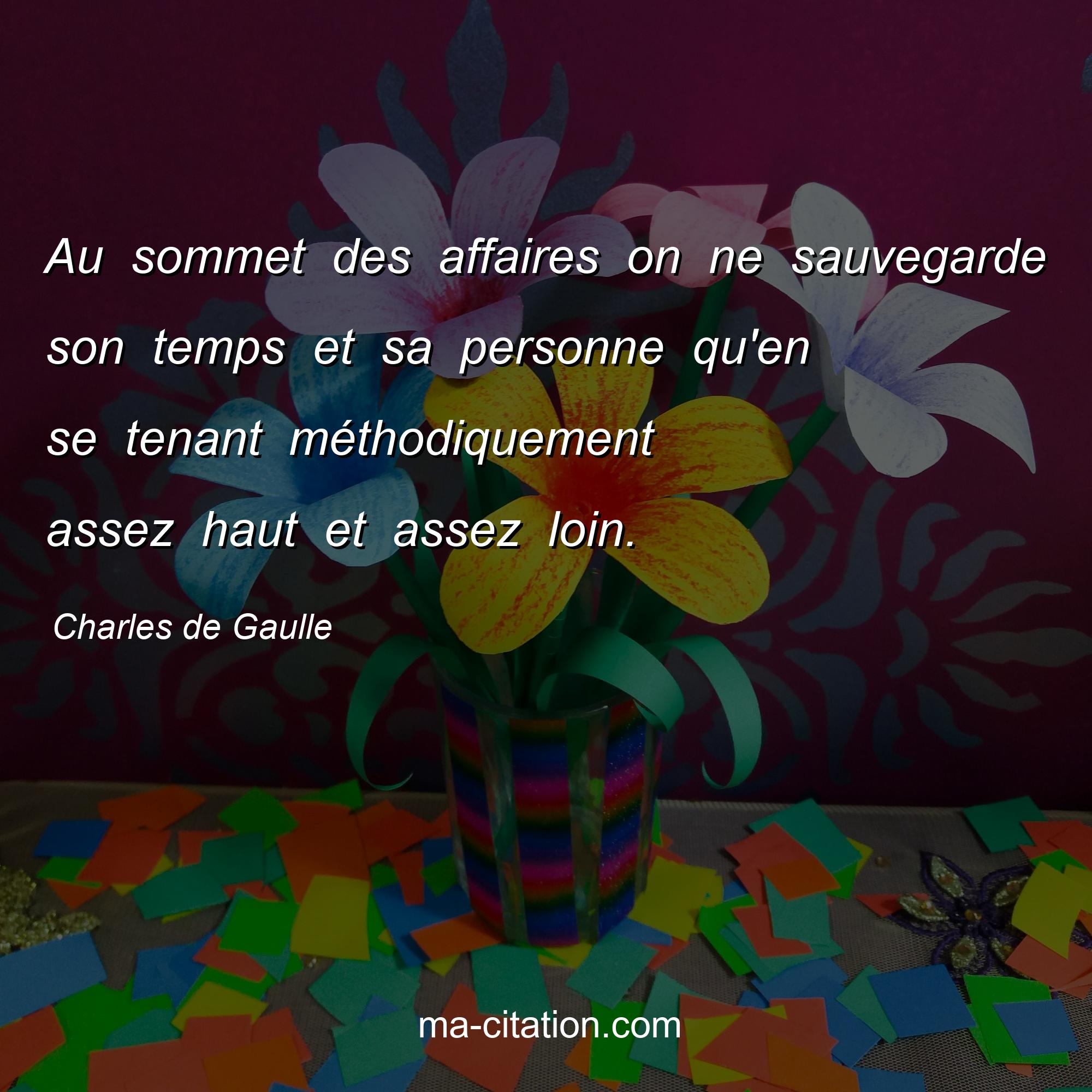 Citation sur la vie de Charles de Gaulle :Au sommet des affaires on ne sauvegarde son temps et sa personne qu'en se tenant méthodiquement assez haut et assez loin.