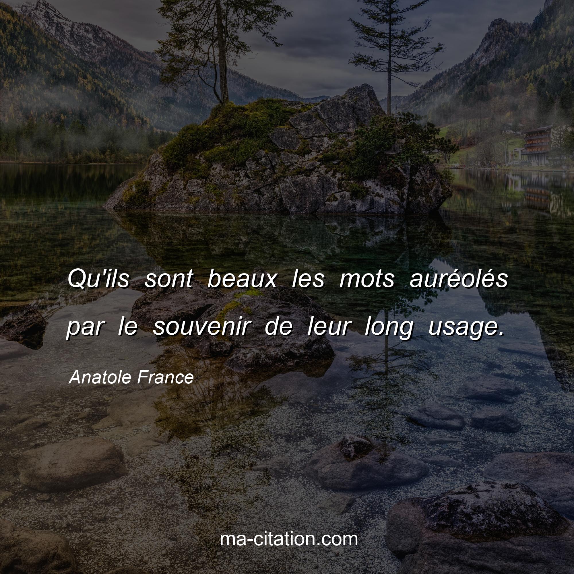 Citation sur la vie d'Anatole France :Qu'ils sont beaux les mots auréolés par le souvenir de leur long usage.