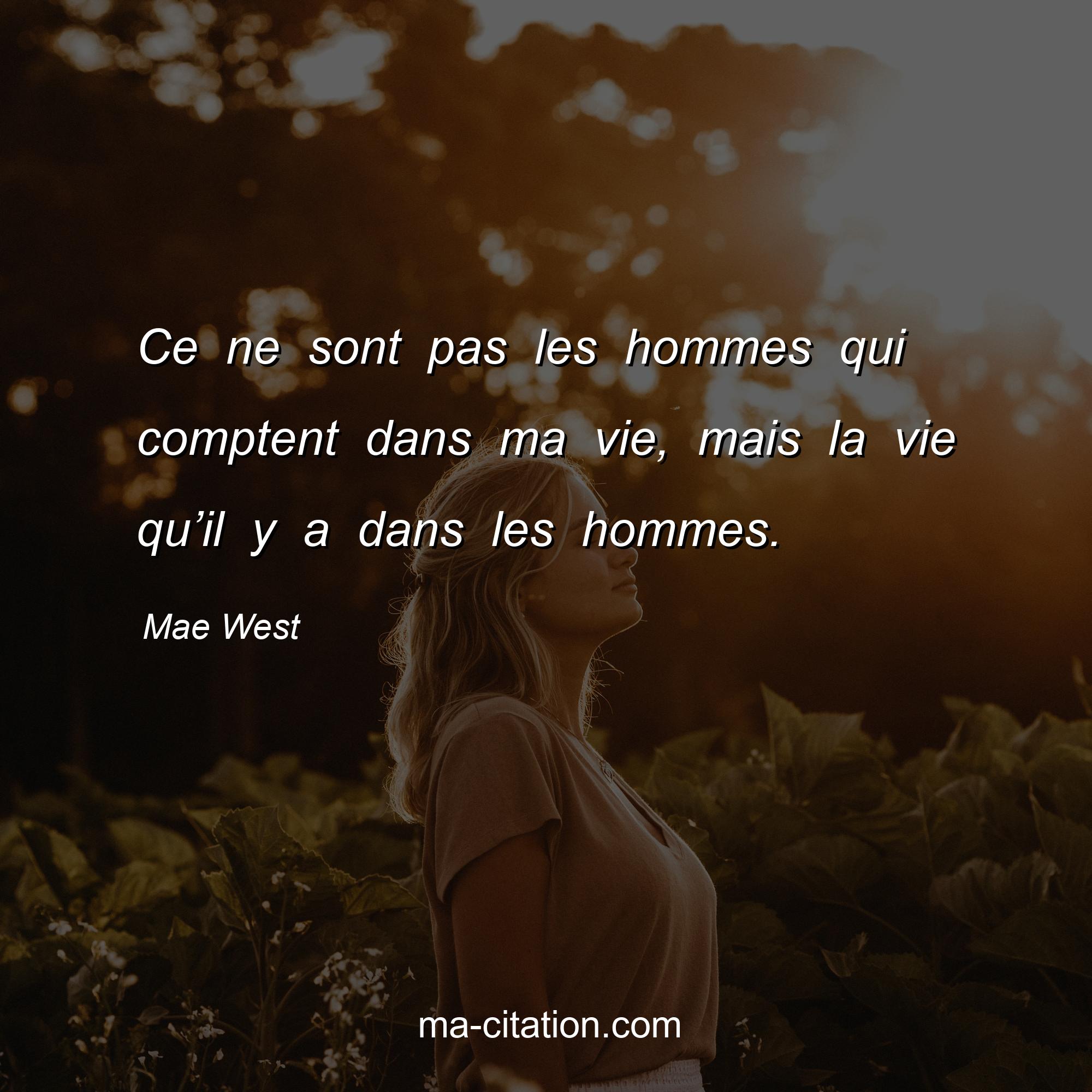 Citation sur la vie de Mae West :Ce ne sont pas les hommes qui comptent dans ma vie, mais la vie qu’il y a dans les hommes.